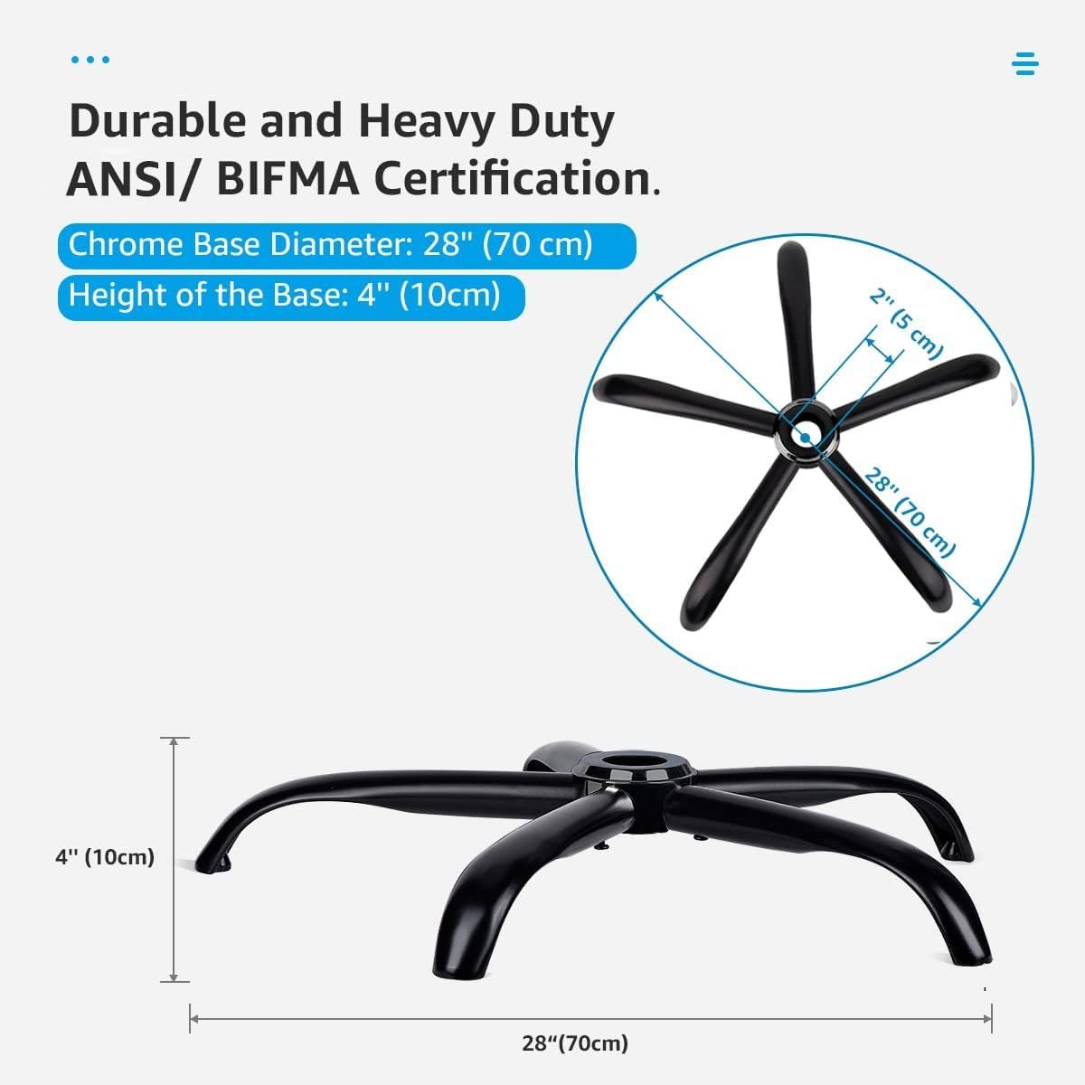 ➤ SIZE DETAIL: Office Chair Base Size in Diameter: 28’’ (70 cm). Chrome Base Leg Length: 12.6’’ (32 cm). Standard Gas Cylinder Socket: 2’’ (5 cm). Standard Caster Sockets: 7/16’’ x 7/8’’ (11mm x 22mm). Height of the Chrome Base: 4’’ (10 cm)