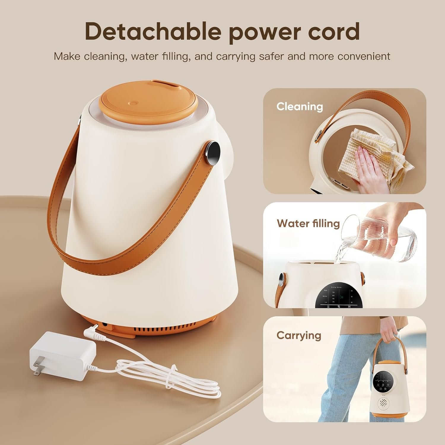 【 Top fill and detachable power cord 】 The portable humidifier can be easily moved to the kitchen or bathroom to fill water, while the large opening design allows for one step refilling, without leakage. The humidifier is equipped with a detachable power cord. When cleaning humidifier, you can remove the power cord, mist tube, and filter to achieve all-round cleaning.