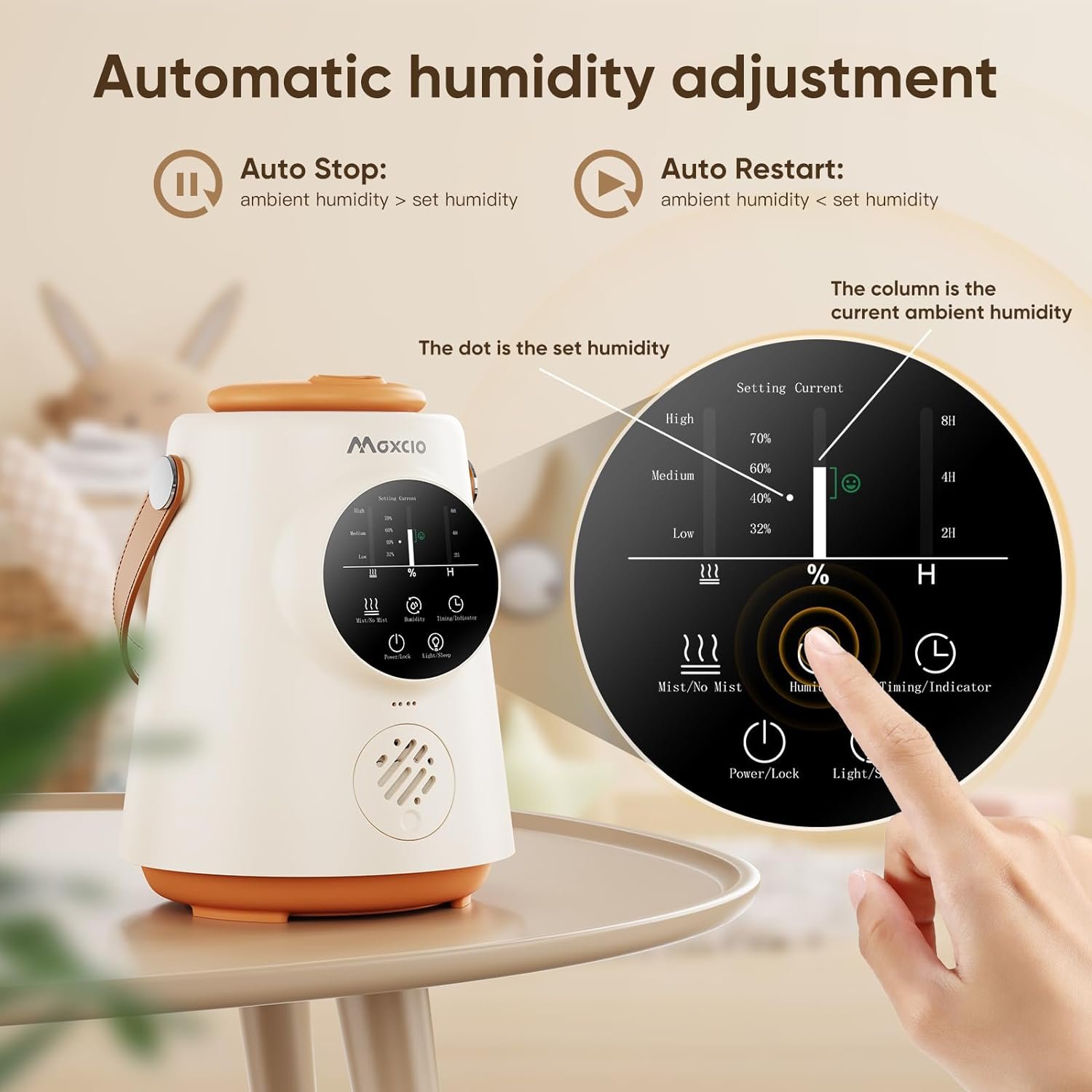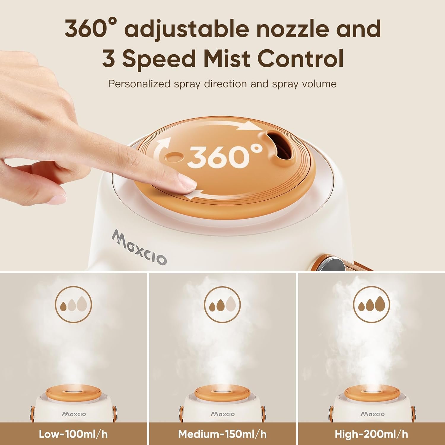 【 Intelligent setting of mist 】 Using touch screen buttons and 360° rotatable nozzle design, 3 speed settings allow you to control the mist output and mist flow direction. Combined with the constant humidity button, it will automatically choose to continue spraying or stop spraying according to the room ambient humidity, helping you to continuously balance indoor humidity.