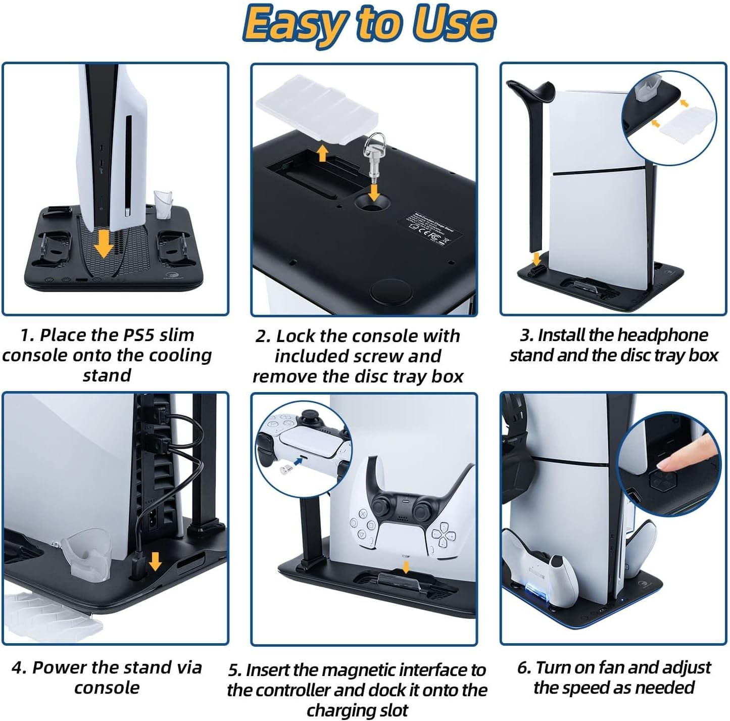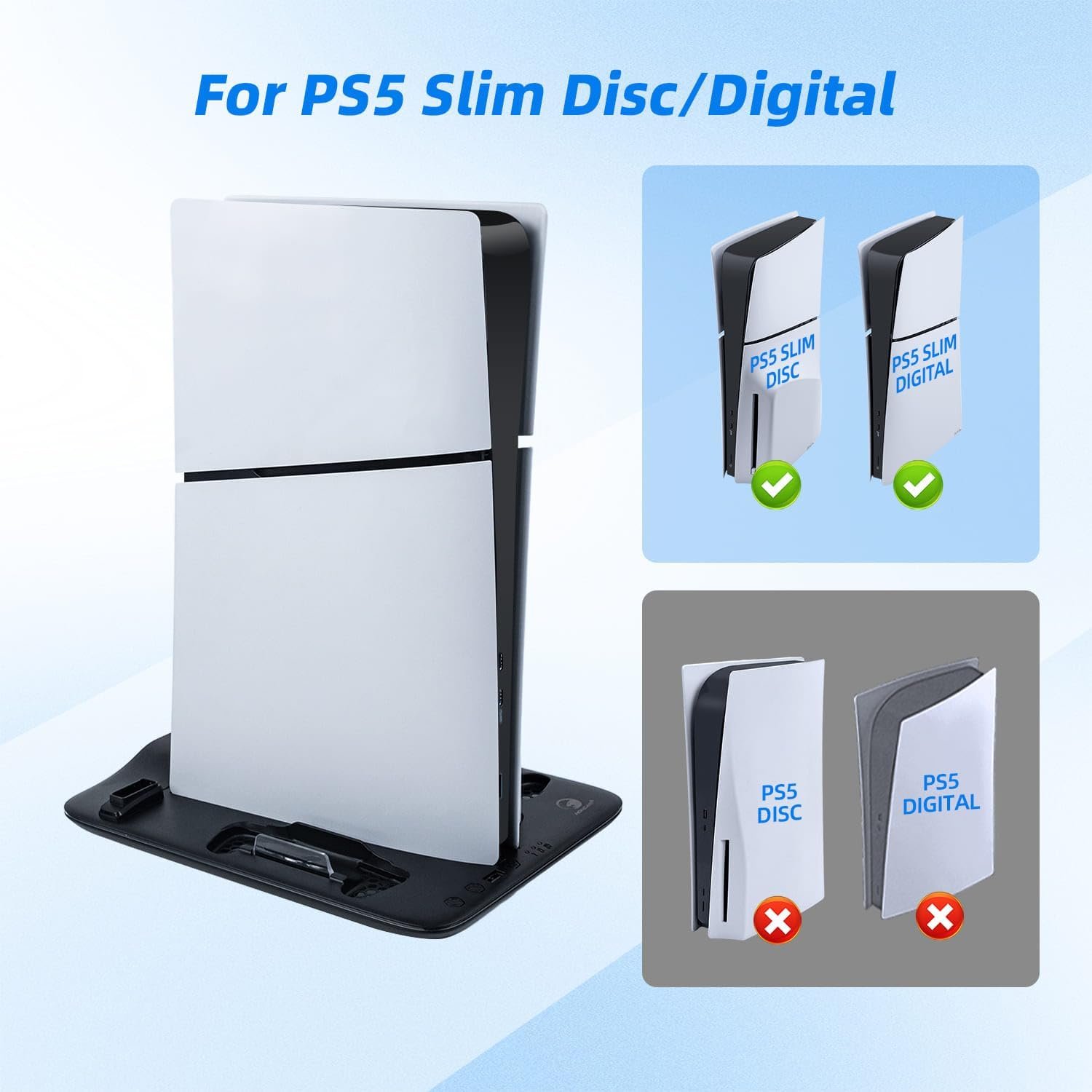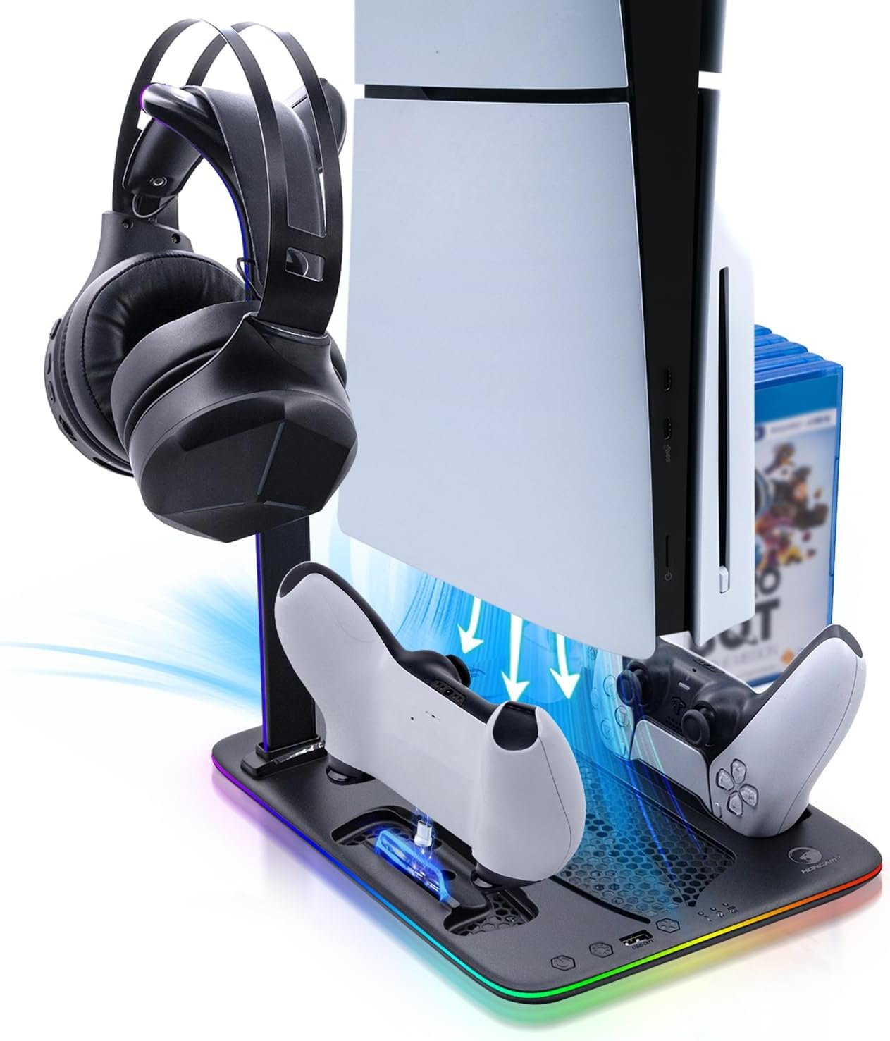 【Specially Designed for PS5 Slim】This RGB Charging Stand is expertly crafted for both the PS5 Slim Disc and Digital versions. It’s not just a stand; it’s a comprehensive station that enhances your gaming setup’s functionality and aesthetics.