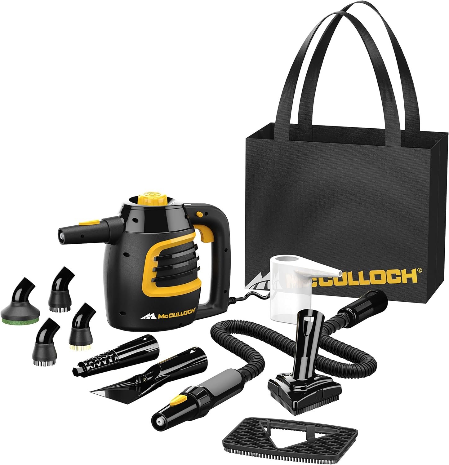 The McCulloch MC1230 Handheld Steam Cleaner is a multi-purpose steam cleaner for use outdoors and indoors. Using ordinary water heated to over 200ºF, the MC1230 effectively and naturally cleans a wide variety of surfaces. Includes 11 versatile attachments. Powerful steam and lockable steam trigger allow you to continuously blast through the task at hand. With over 50 years of experience in the design and manufacture of outdoor power equipment, McCulloch has established an unrivaled reputation for design, reliability, and value in a wide range of outdoor, garden and workshop products.