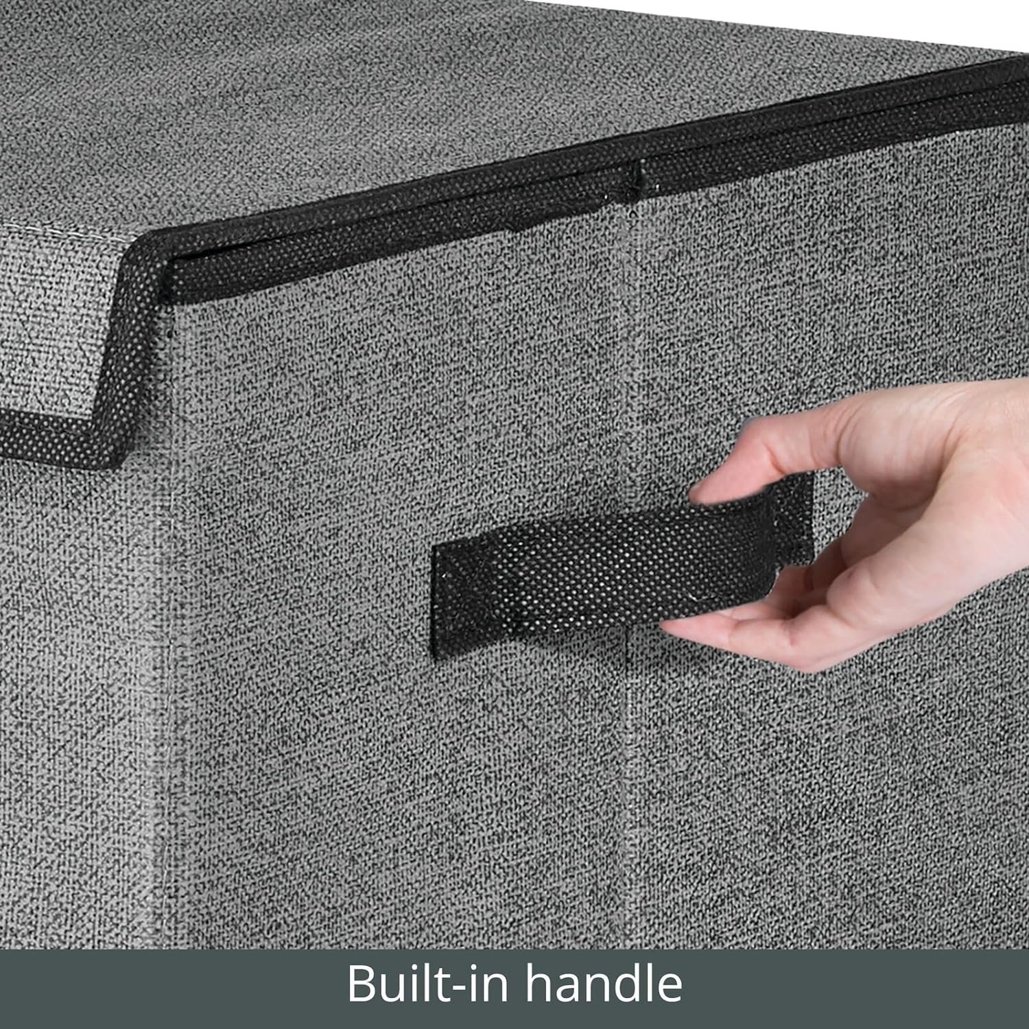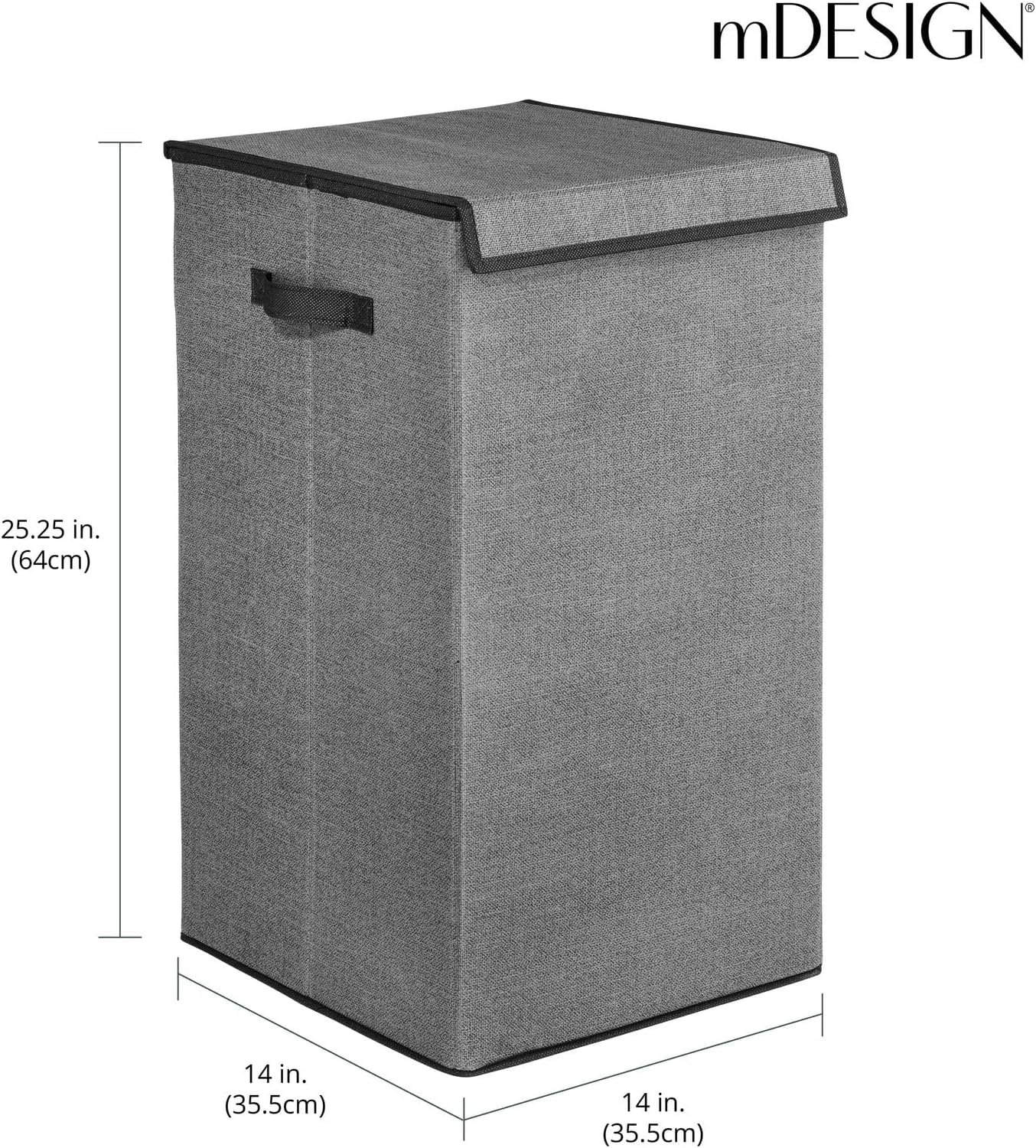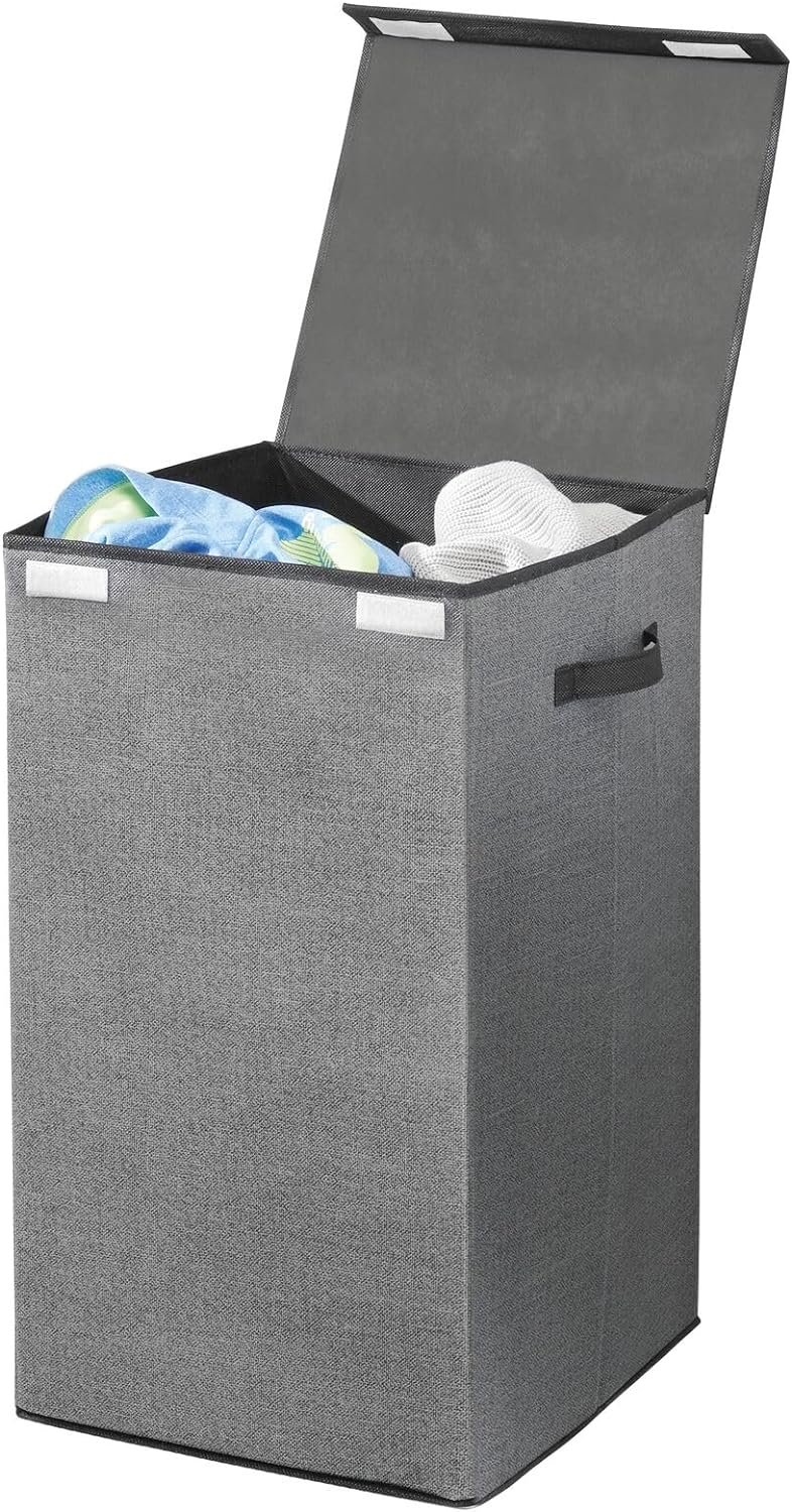 HINGED LID: Attached lid stays securely closed with the strong grip strips keeping dirty clothes out of sight and discreetly hidden; Attached handles make carrying the hamper from closet to bedroom to laundry room simple and easy; The soft fabric construction won’t snag or tear clothing; Lightweight for easy transport