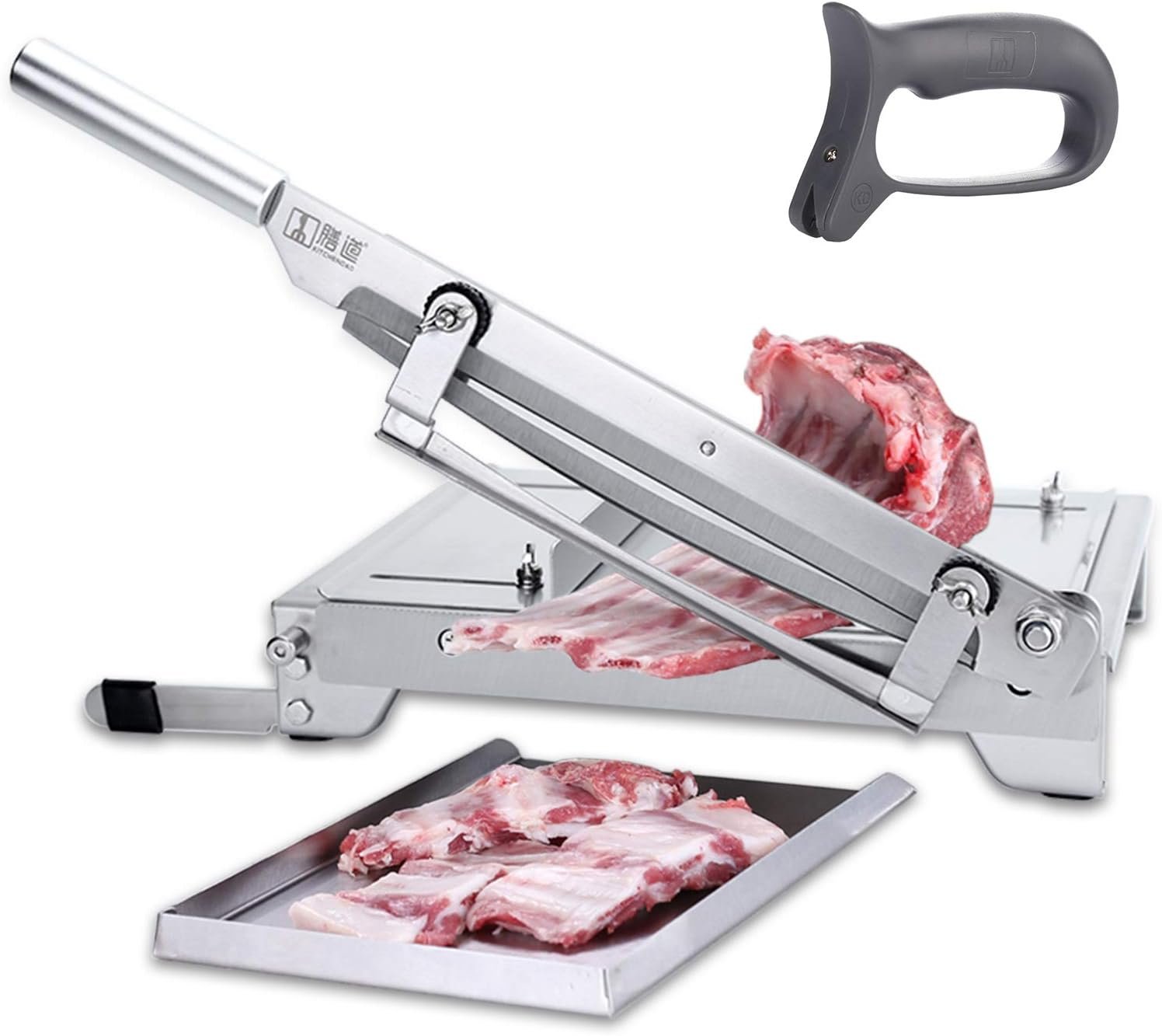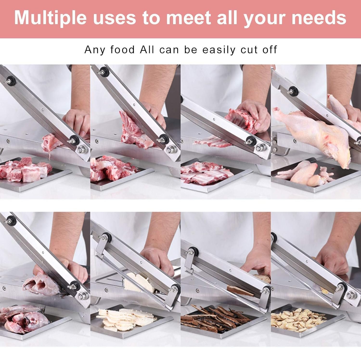 【Widely application Manual Ribs Meat Slicer】Materials Can Be Cut: Frozen Meat/ Beef/ Mutton, Ribs, Lamb Chops, Cartilage, Jerky Chicken, Duck, Fish, Vegetable, Herb, Pastry, Cheese, etc. (CANNOT cut Trotters, Large leg bones of pigs, cattles, sheep, etc.) You can add one in your kitchen, it is definitely a good kitchen helper; you can also add one in your restaurant, it will save you a lot of time to cut ingredients, while absolutely saving effort.