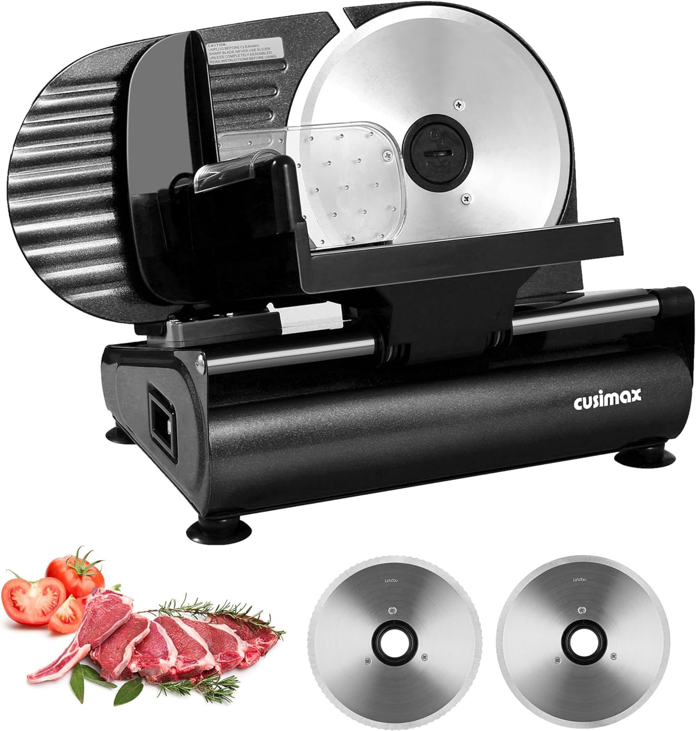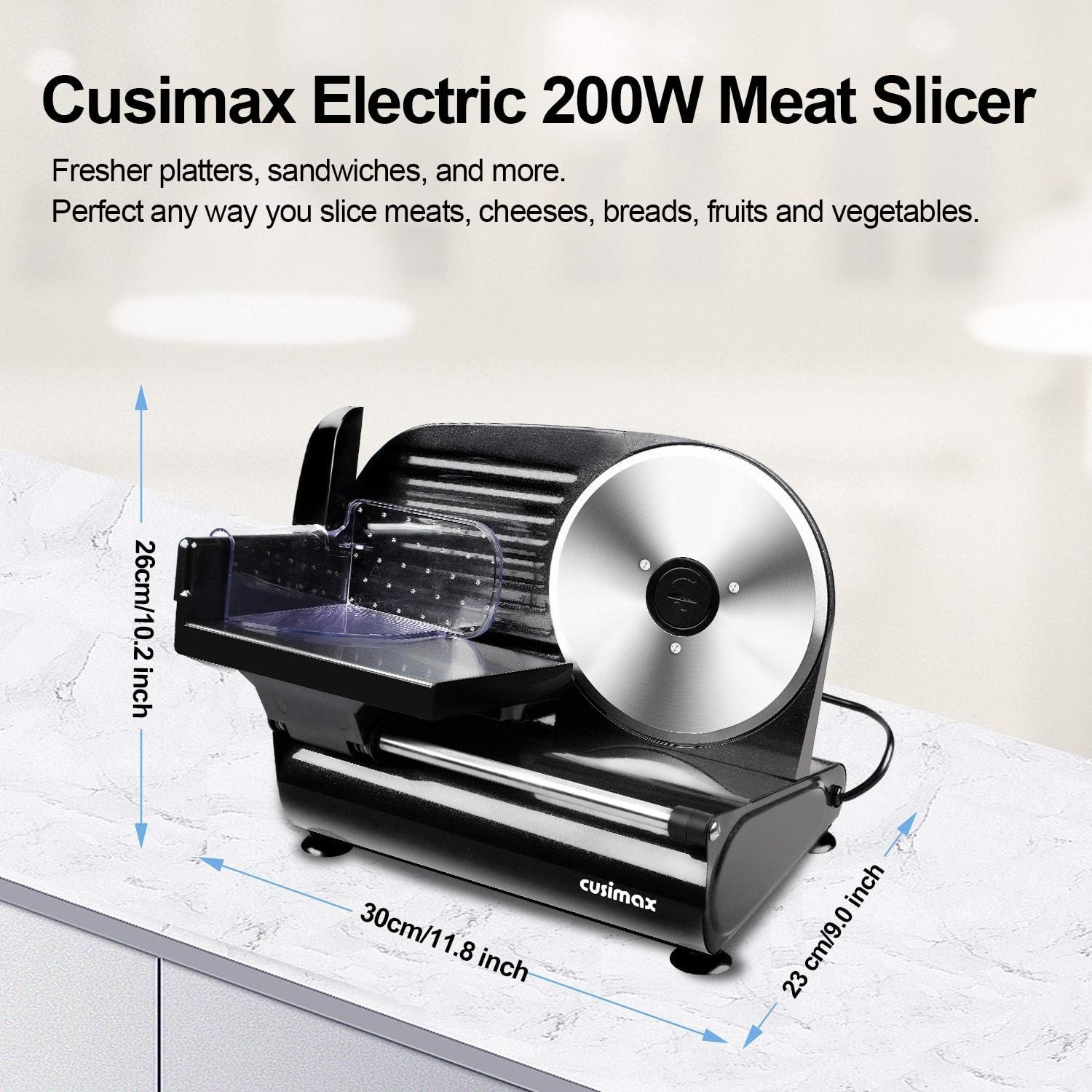 Meat Slicer,CUSIMAX Electric Deli Meat Slicer for Home,2 Removable 7.5”Stainless Steel Blades and Pusher,1-15mm Adjustable Thickness Food Slicer Easy for Cut Various Foods