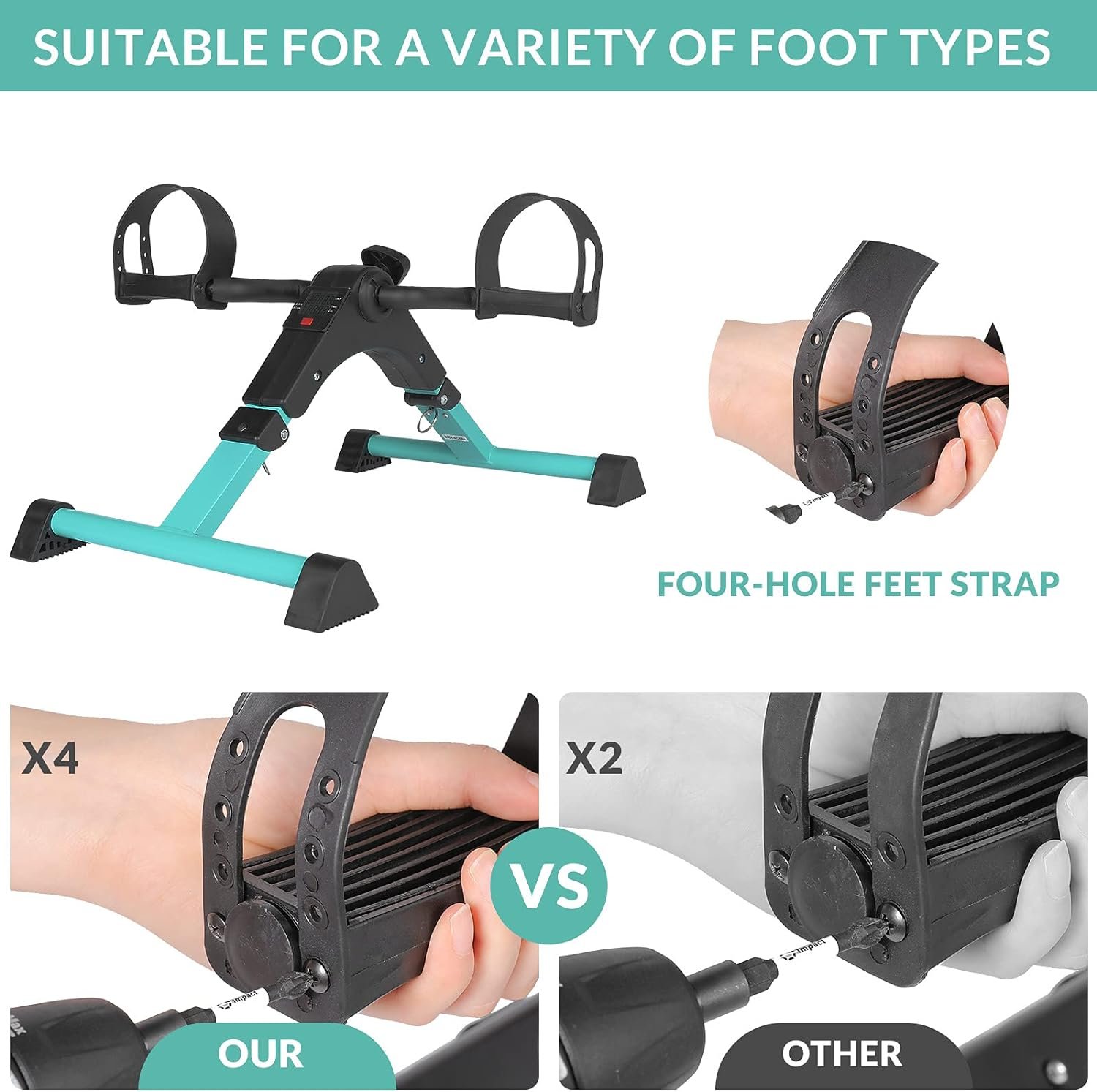 SAFE AND NON-SLIP: An extra fixing strap and the 4 non-slip rubber can increases stability as it prevents friction between the floor and the pedal exerciser. The adjustable 4 hole foot strap can adapt to different sizes of feet. And the design of sponge sleeve can insulated heat to prevent burns from fever as the pipeline because the machine is running too long