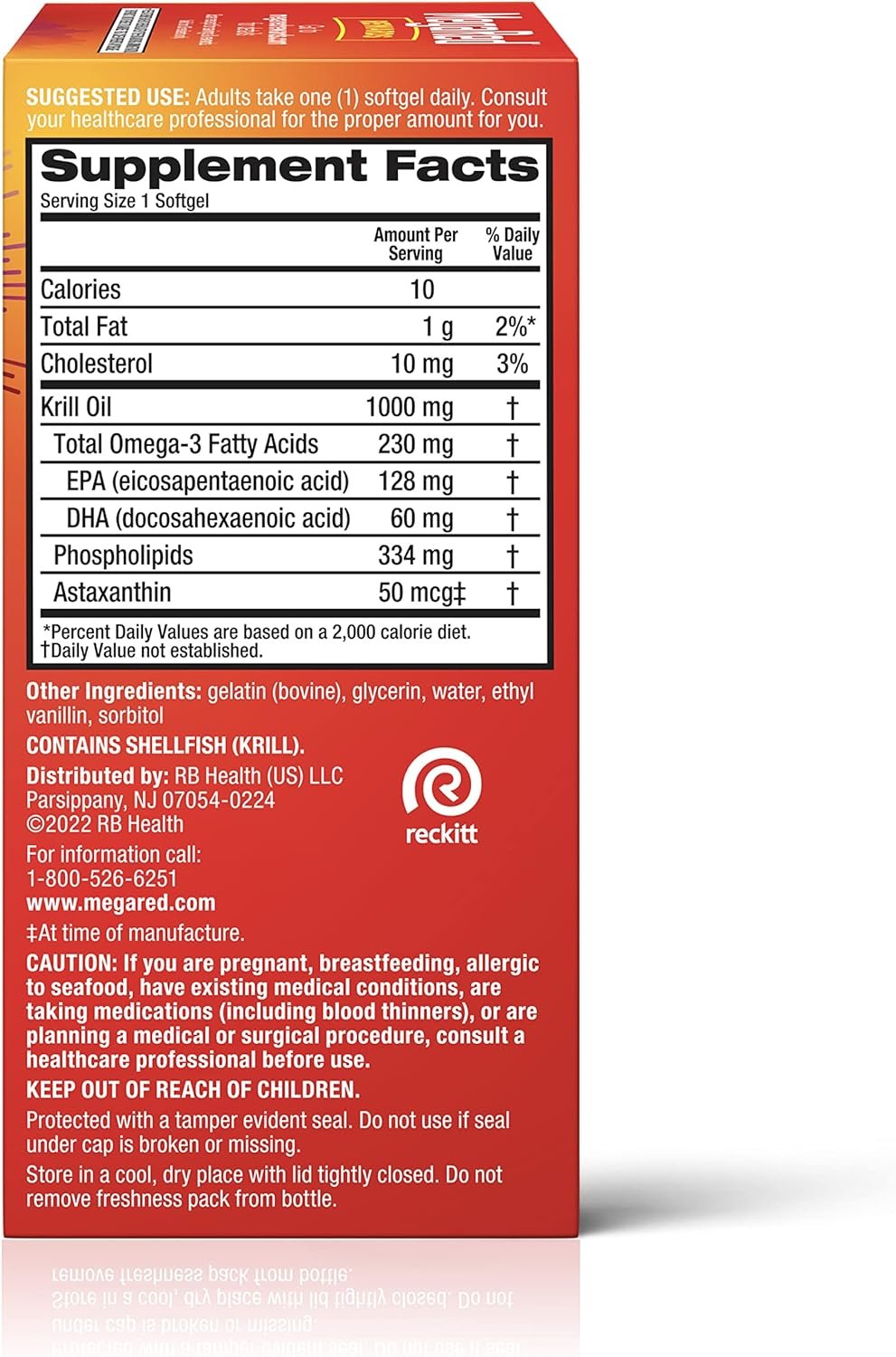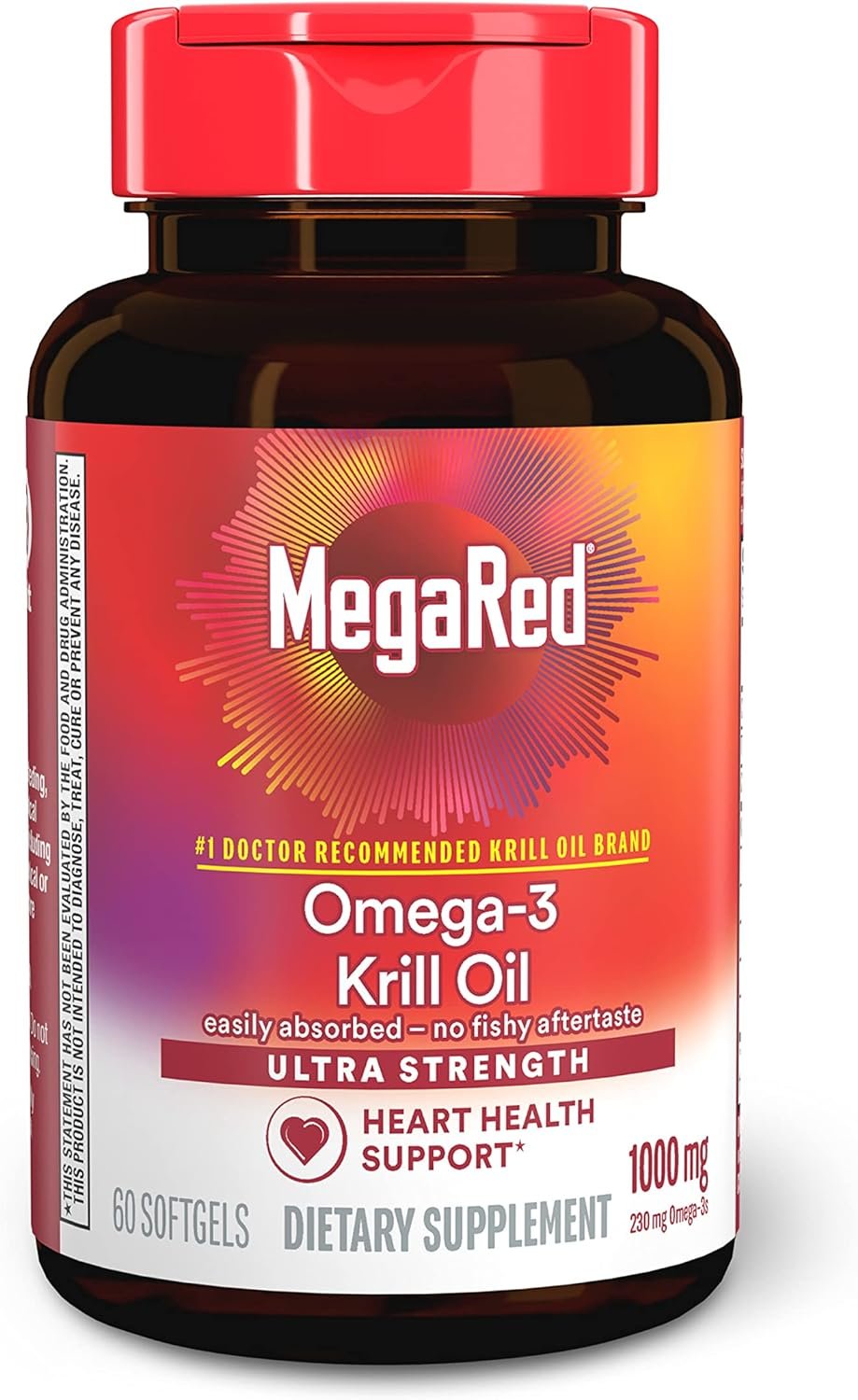 MegaRed 1000mg Ultra Strength Omega-3 Krill Oil supplements provide an optimal combination of Omega-3 fatty acids and the powerful antioxidant astaxanthin to support heart health in a once daily softgel. MegaRed 1000mg Ultra strength Omega-3 Krill Oil has been shown to significantly increase your Omega-3 index in just 30 days¹. To ensure purity, we remove salts and other impurities to provide the purest krill oil on the market.* ٭THESE STATEMENTS HAVE NOT BEEN EVALUATED BY THE FOOD AND DRUG ADMINISTRATION. THIS PRODUCT IS NOT INTENDED TO DIAGNOSE, TREAT, CURE OR PREVENT ANY DISEASE. ¹Proprietary controlled human clinical study of 300mg MegaRed for improving Omega-3 Index, Aker Biomarine, 2010