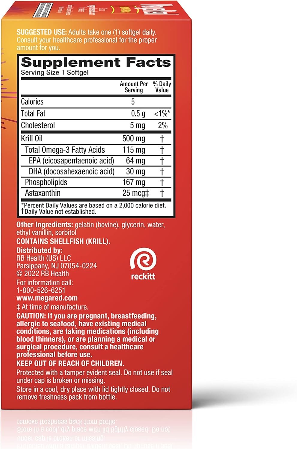 MegaRed 500mg Extra Strength Omega 3 Krill Oil supplements provide an optimal combination of Omega-3 fatty acids and the powerful antioxidant astaxanthin to support your heart health in a once daily softgel. MegaRed 500mg Extra Strength Omega 3 Krill Oil has been shown to significantly increase your Omega-3 index in just 30 days. To ensure purity, we remove salts and other impurities to provide the purest krill oil on the market.? ?THESE STATEMENTS HAVE NOT BEEN EVALUATED BY THE FOOD AND DRUG ADMINISTRATION. THIS PRODUCT IS NOT INTENDED TO DIAGNOSE, TREAT, CURE OR PREVENT ANY DISEASE. 1 Proprietary controlled human clinical study of 300mg MegaRed for improving Omega-3 Index, Aker Biomarine, 2010.