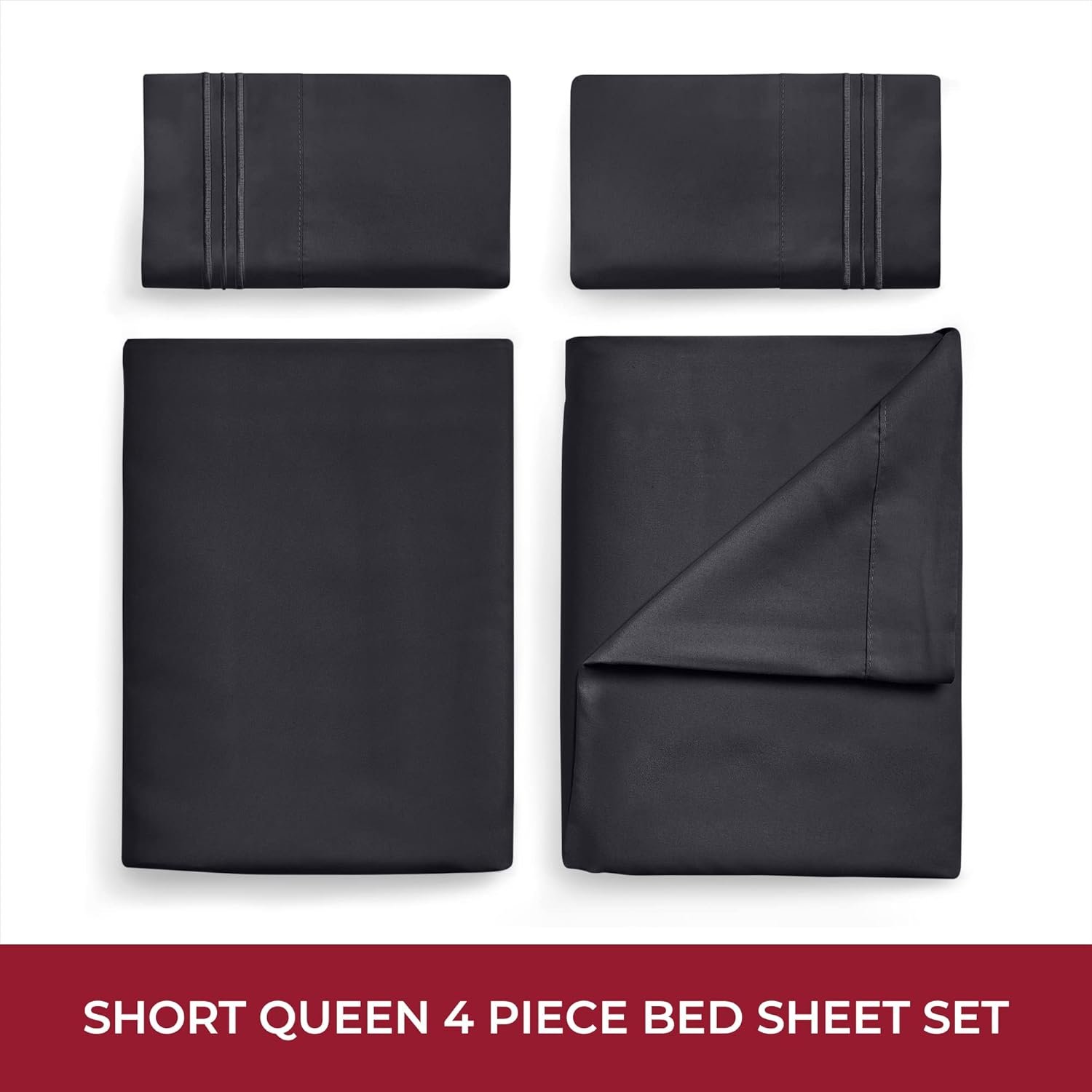 Mellanni RV Short Queen Sheets – 4 PC Iconic Collection Bedding Sheets & Pillowcases – Hotel Luxury, Extra Soft, Cooling Bed Sheets – Deep Pocket up to 10 inch (RV/Short Queen, Black)