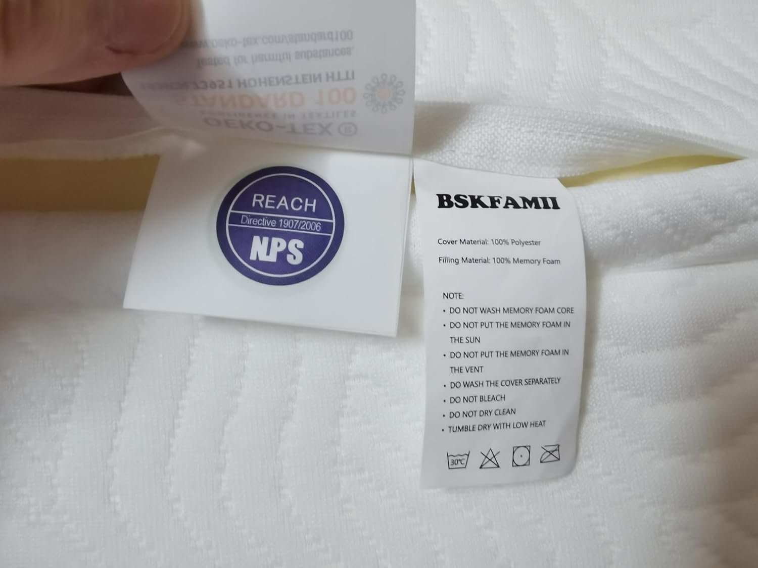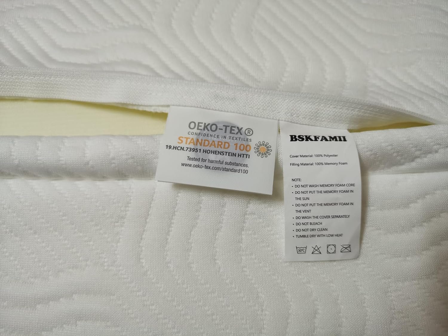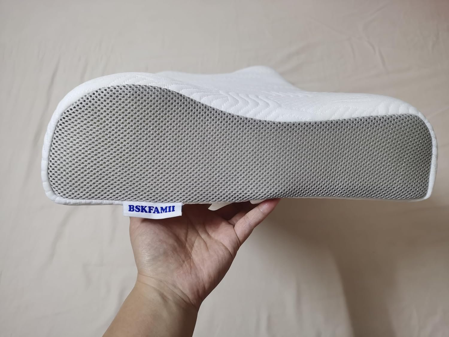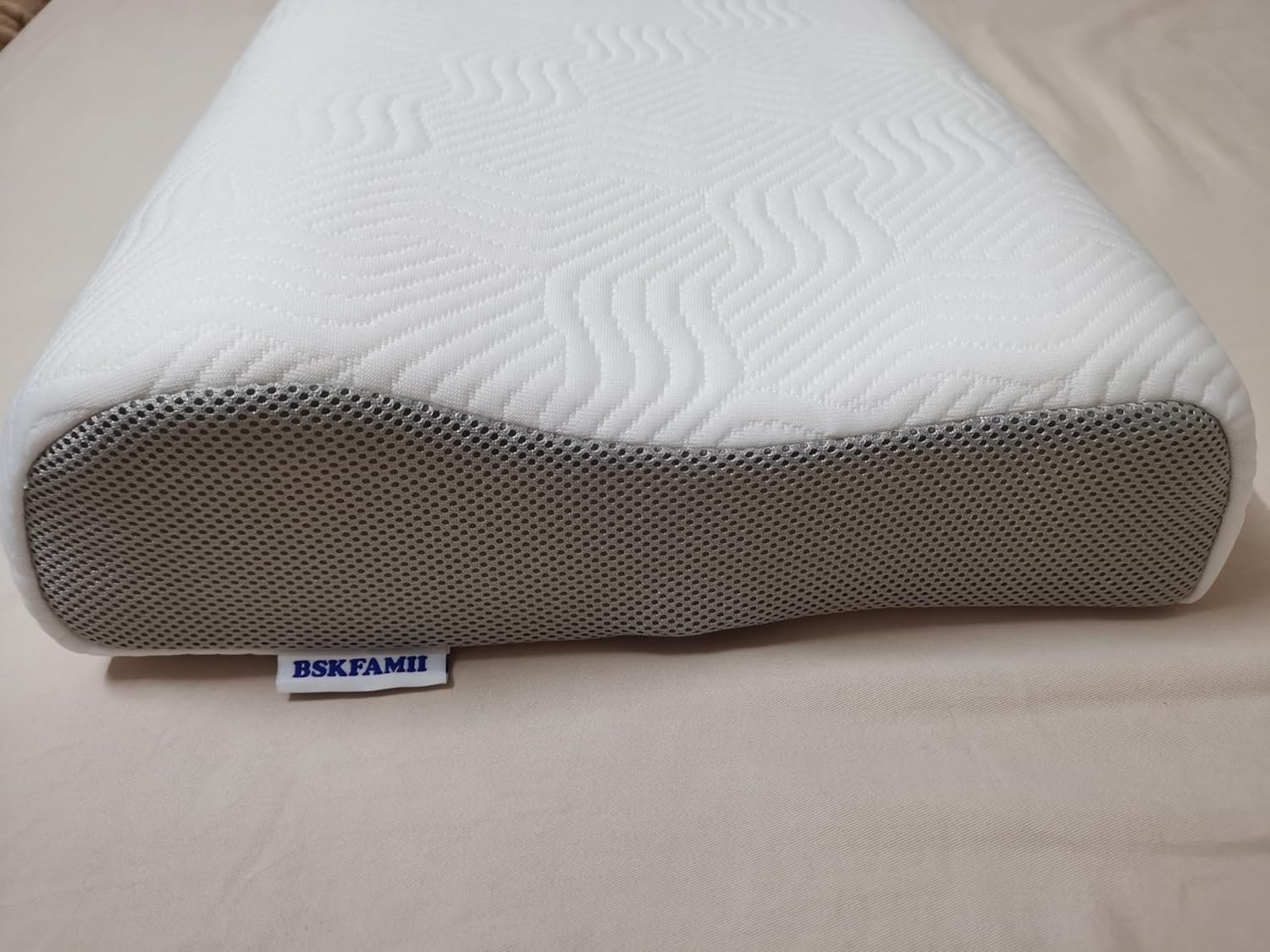 【Slow Rebound High Quality Memory Foam Pillow】BSKFAMII cervical pillow is made of high quality slow rebound memory foam with CertiPUR-US and Oeko-Tex certification, which is odorless, non-toxic and keeps its shape without deformations for long term use. Feels like sleeping on a cloud, and effectively relieves head, shoulder, and neck pain to provide a comfortable and pressure-free sleeping experience. Perforated design helps dissipate heat, increasing sleep comfort and preventing waking up due to heat in the middle of the night.