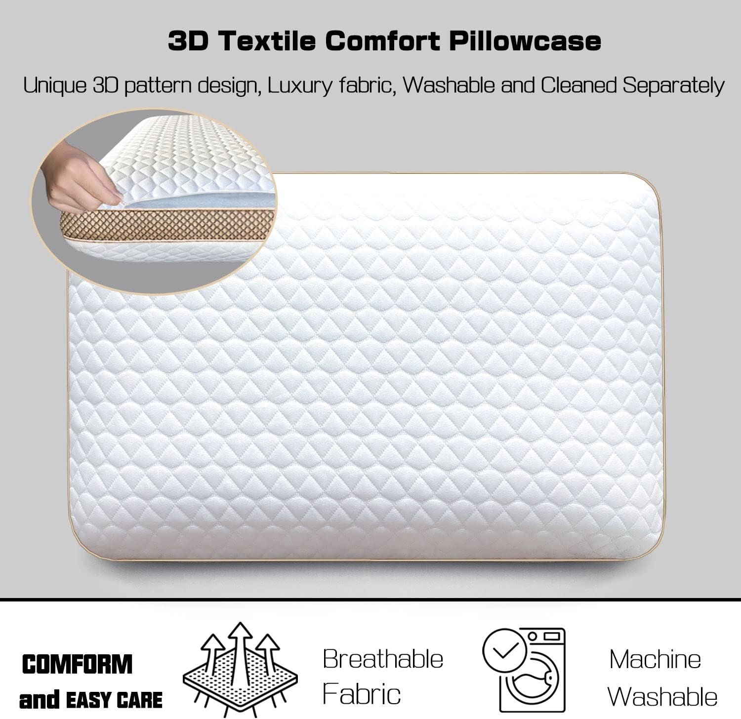 The gel infusion and open-cell technology make it more comfortable to sleep on. Made with CertiPUR-US foam and OEKO-TEX fabric, it’s free of harmful ingredients. The outer cover is ultra soft and washable. The inner cover will protect the memory foam to last longer. Do not place pillow foam under the direct and bright sun, as sunshine will impact softness of the foam.