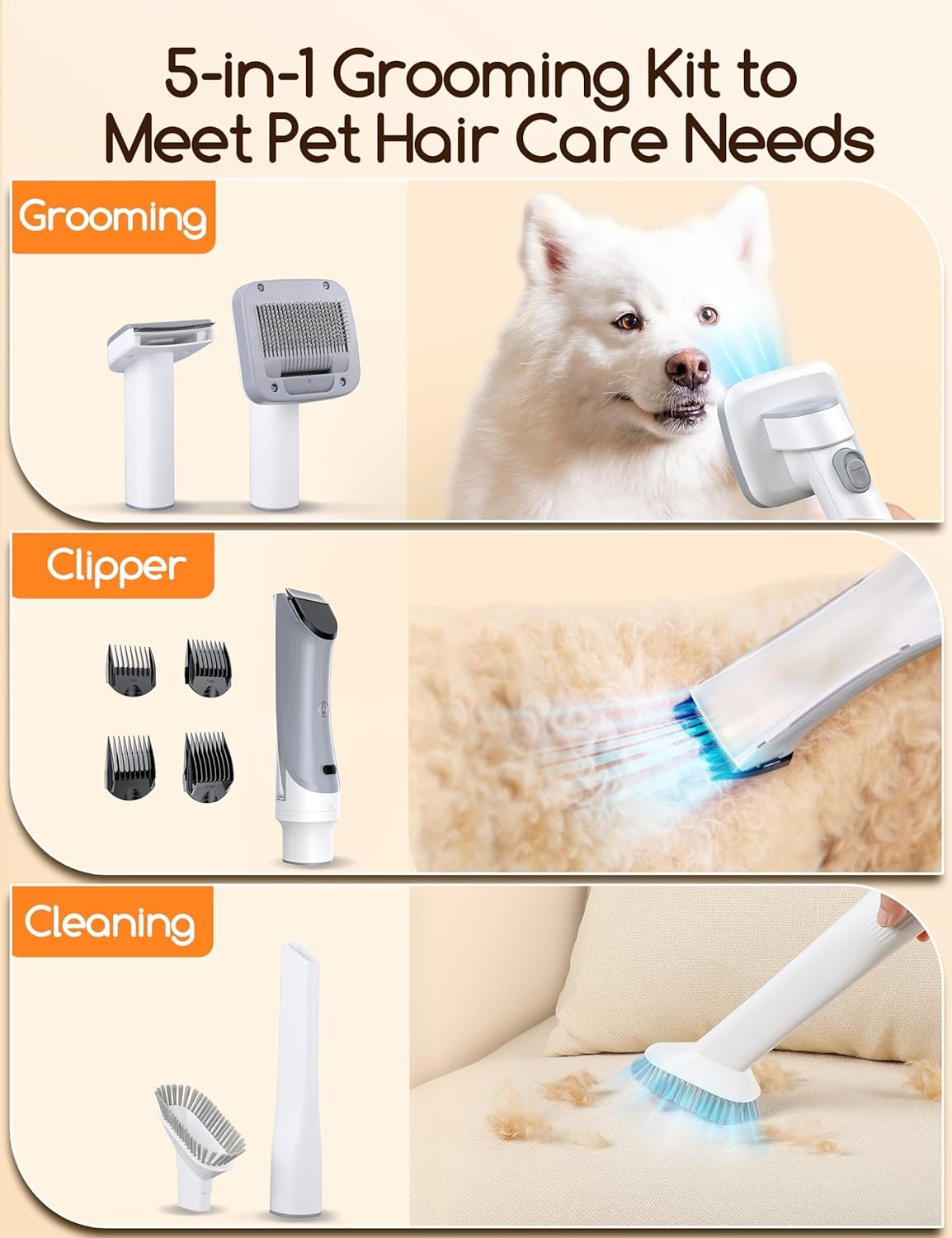 🐶【Pet Grooming and Vacuuming 】Meowant’s pet grooming kit not only includes professional dog grooming tools, but also has 3 levels of suction to remove 99% of scattered pet hair with a maximum suction of approximately 13kpa. You can keep your home clean and tidy while grooming them!