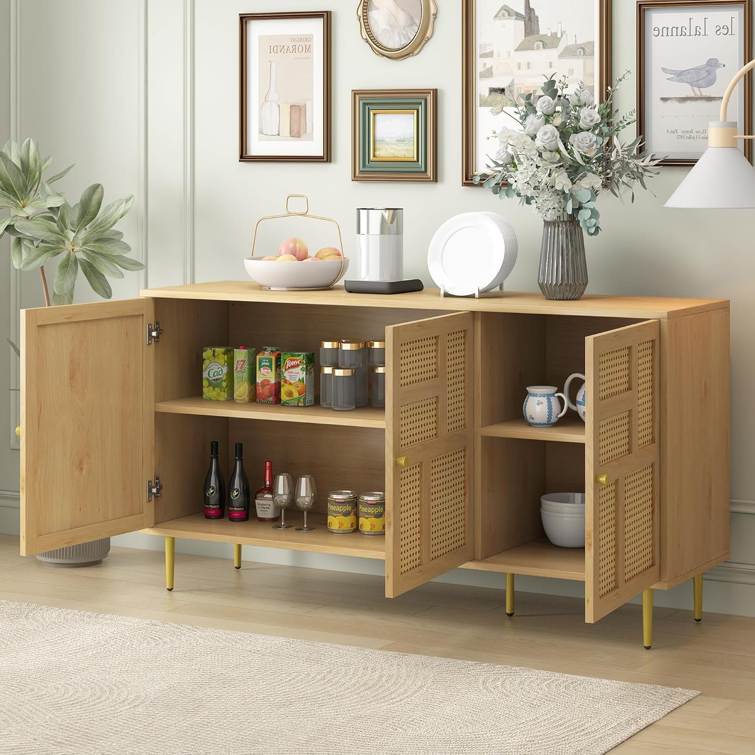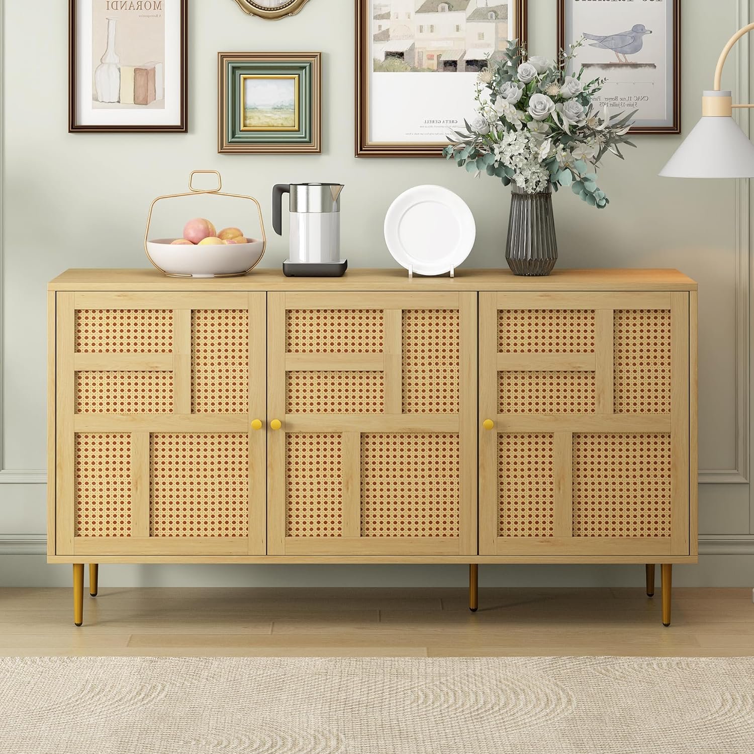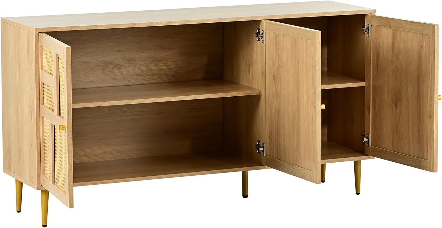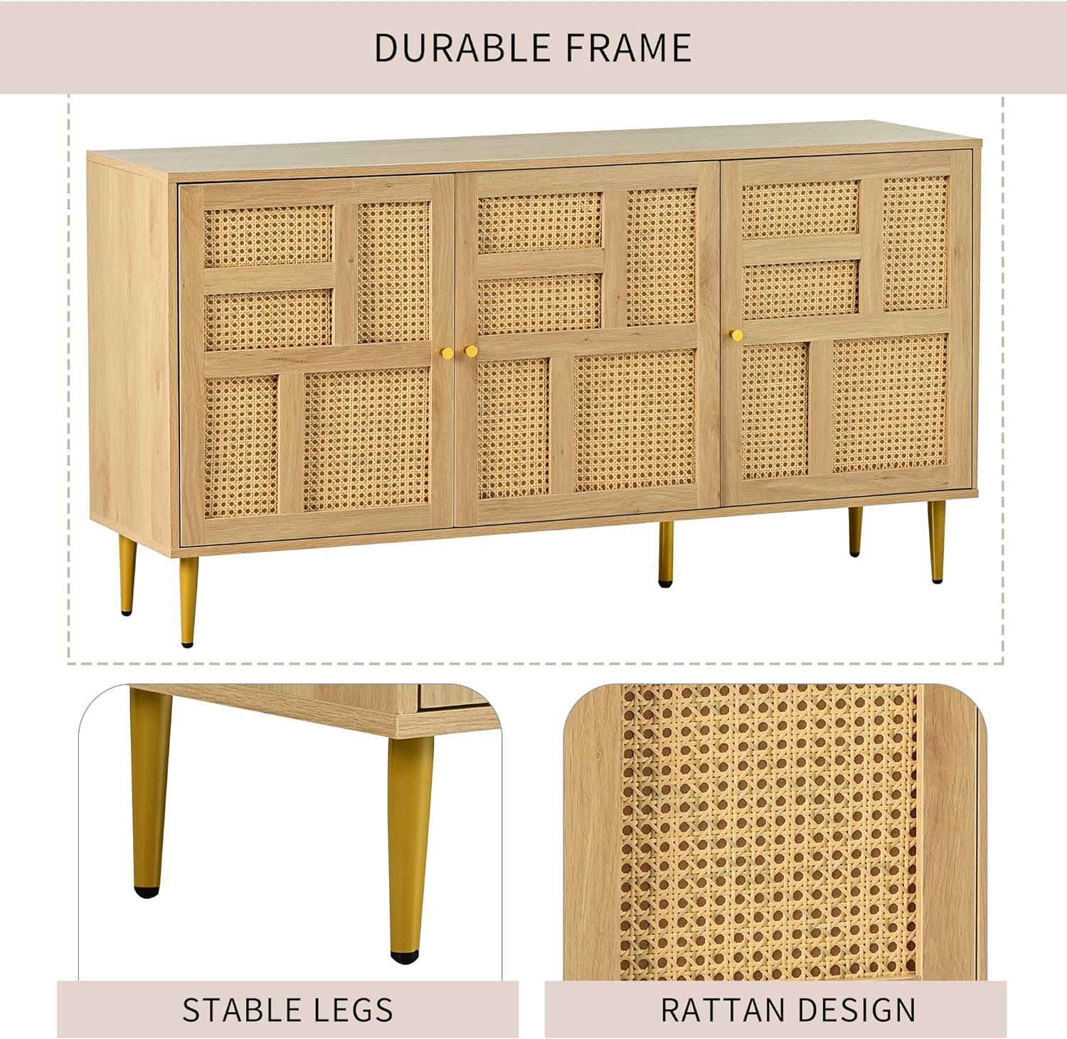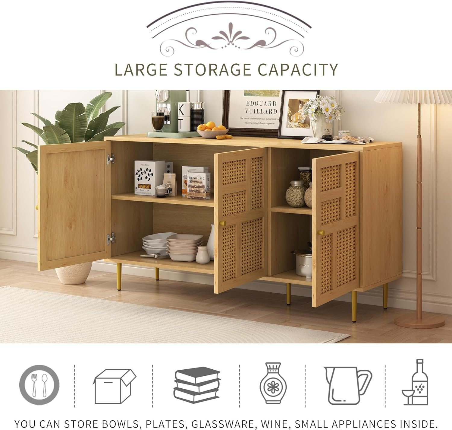 The rattan buffet cabinet with storage is composed of high-quality particle board, metal legs, and mental handles,which is stable and long-lasting.