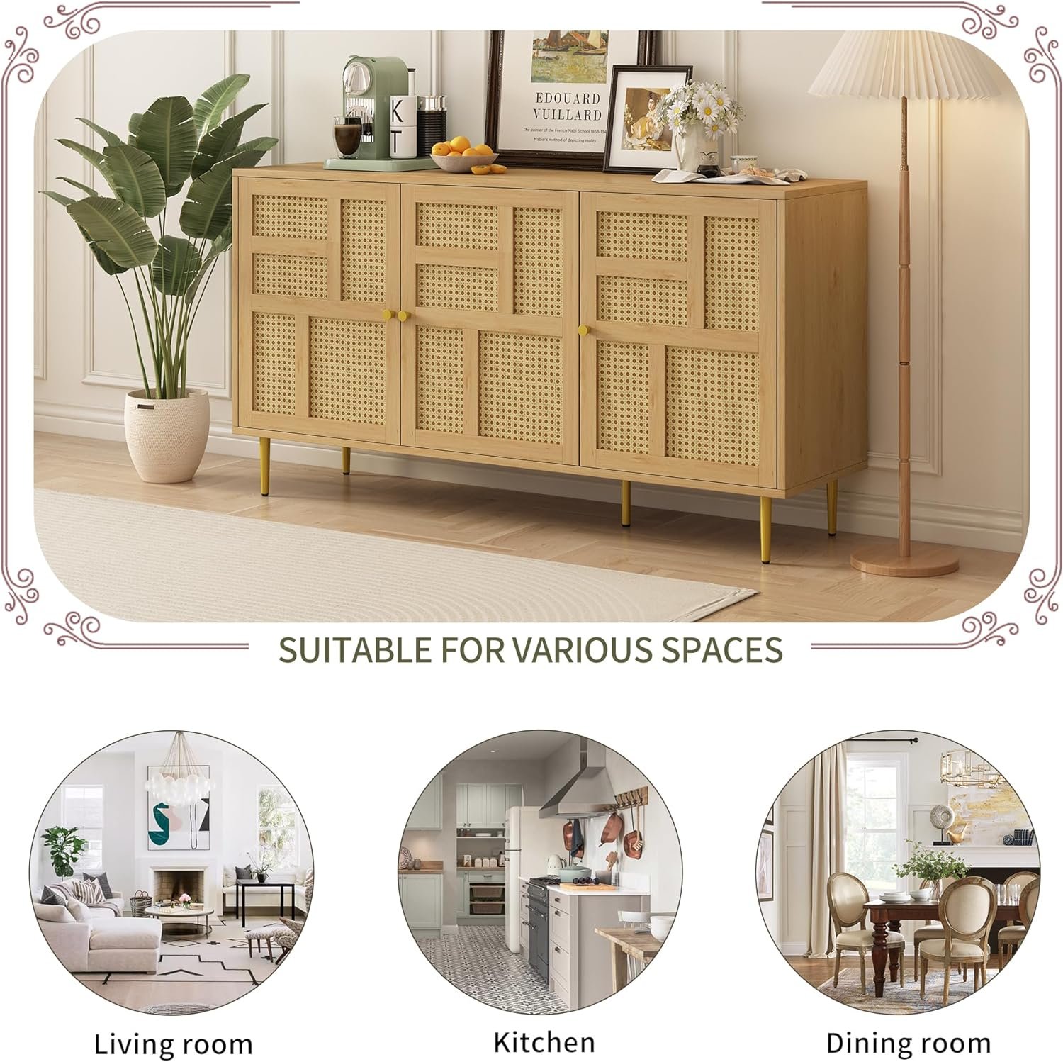 【Classic Design Style & Versatile Use】The rattan side cabinet is a modern and classic combination and natural tones to offer a touch of refinement to your home decor. As a sideboard or buffet cabinet in the dining area or kitchen, living room, kitchen, hallway, or bedroom, the versatile storage cabinet fulfills your diverse storage demands.