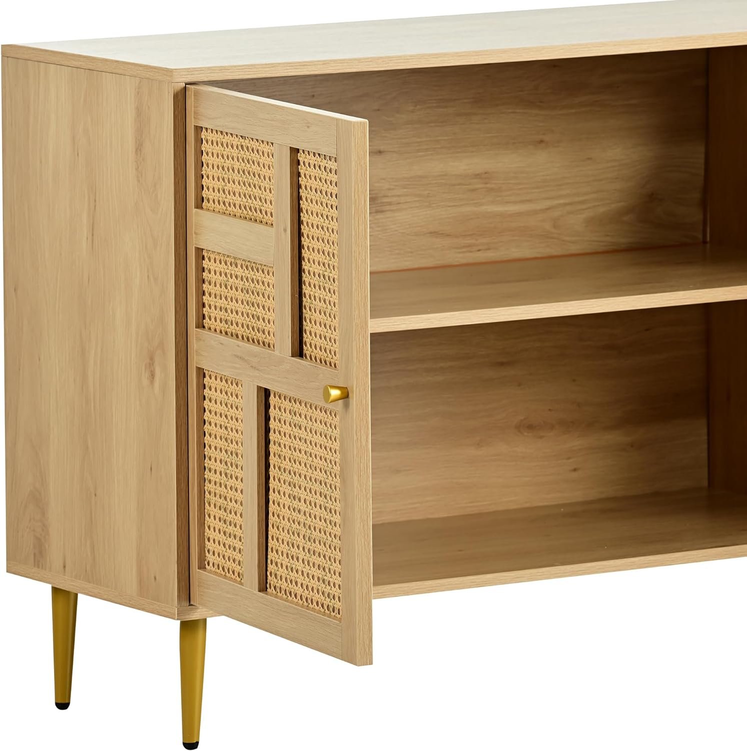 Elegant Rattan TV Stand for TVs up to 55″ with Adjustable Shelves and Storage Cabinets for Living Room