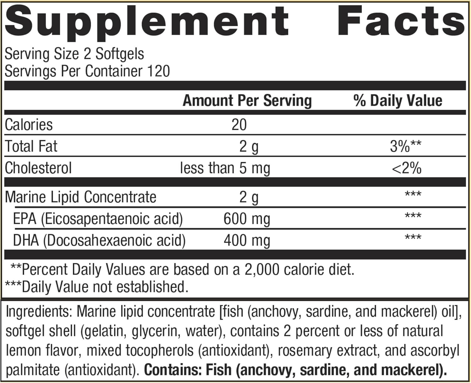 Omega EPA-DHA Supplement: OmegaGenics EPA-DHA 500 softgels contain 600 mg EPA and 400 mg DHA per serving to support heart health*