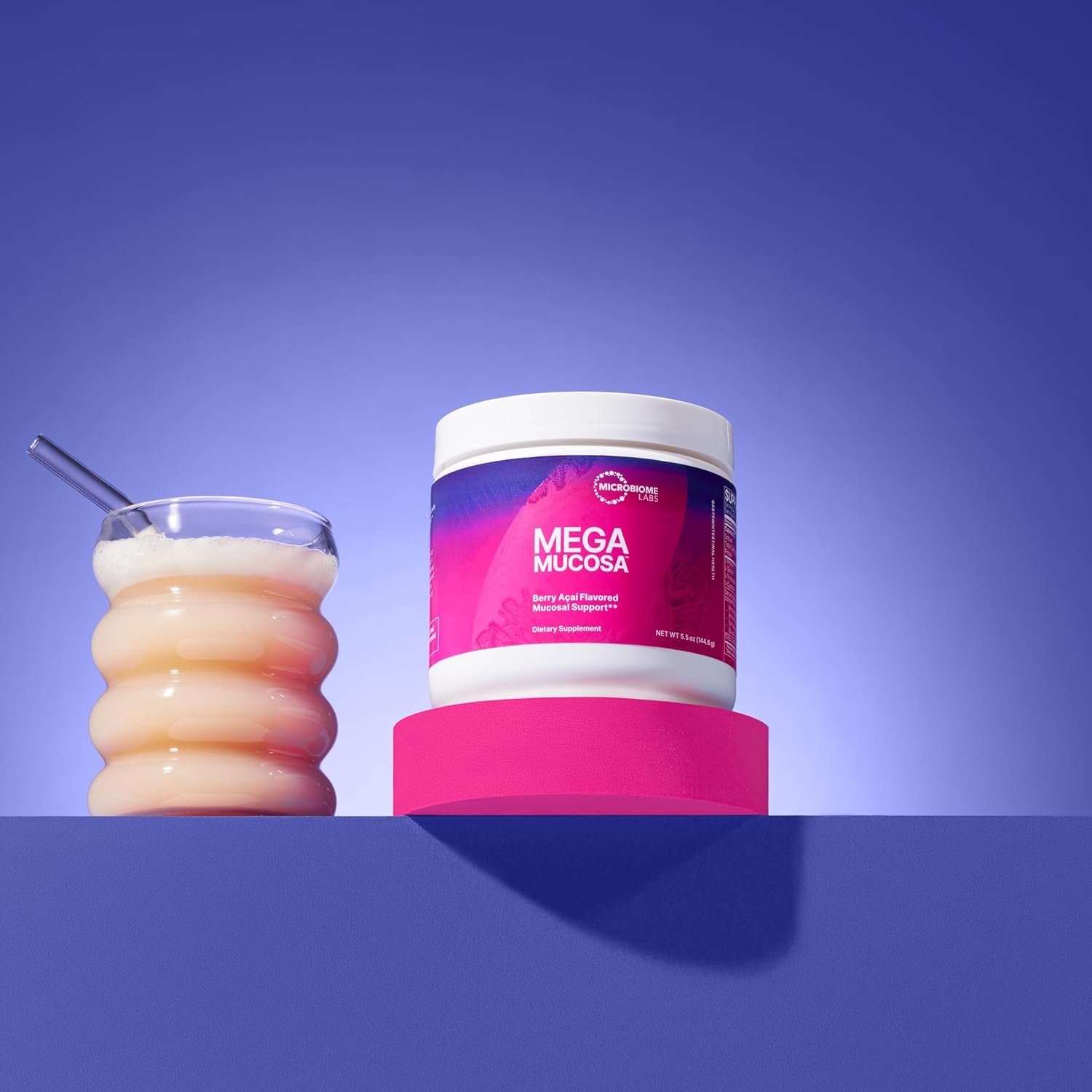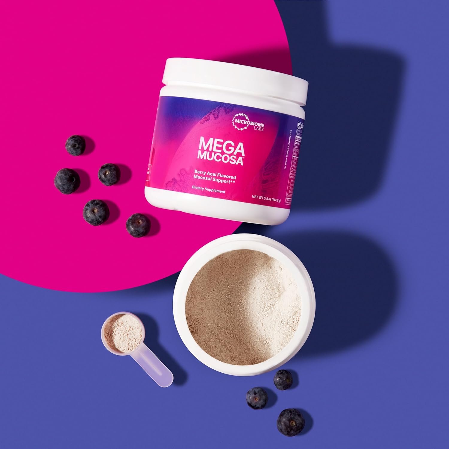 Microbiome Labs MegaMucosa – GI Lining Powder Supplement – Gut Lining & Immune Support with Immunoglobulins & Amino Acids – Berry Acai Flavor Powder for Adults, Children & Teens (5.5 oz)