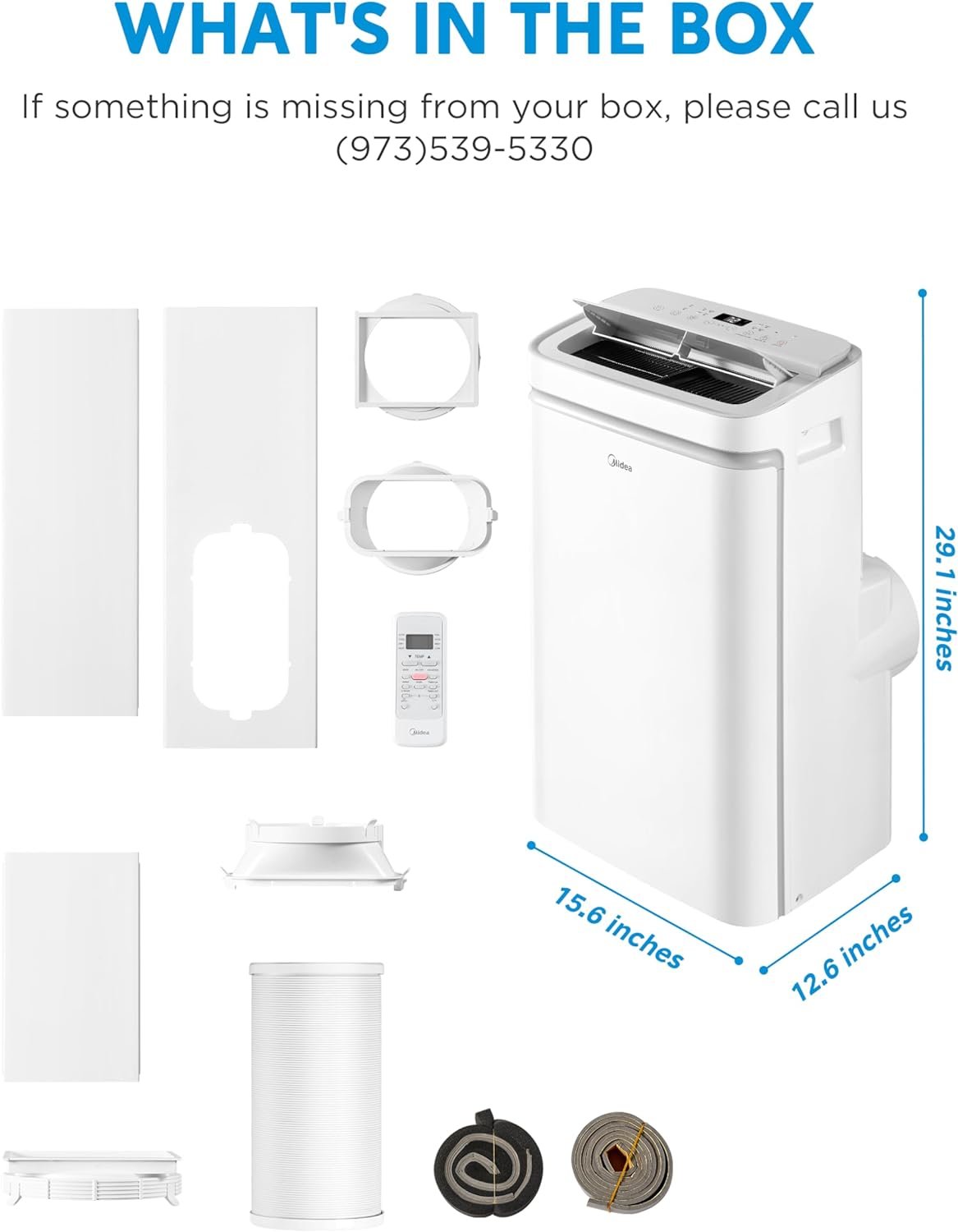 Midea 14,000 BTU ASHRAE (10,000 BTU SACC) Portable Air Conditioner, Cools up to 375 Sq. Ft., with Dehumidifier & Fan mode, Control with Remote, Amazon Alexa & Google Assistant, Easy-to-use and Install