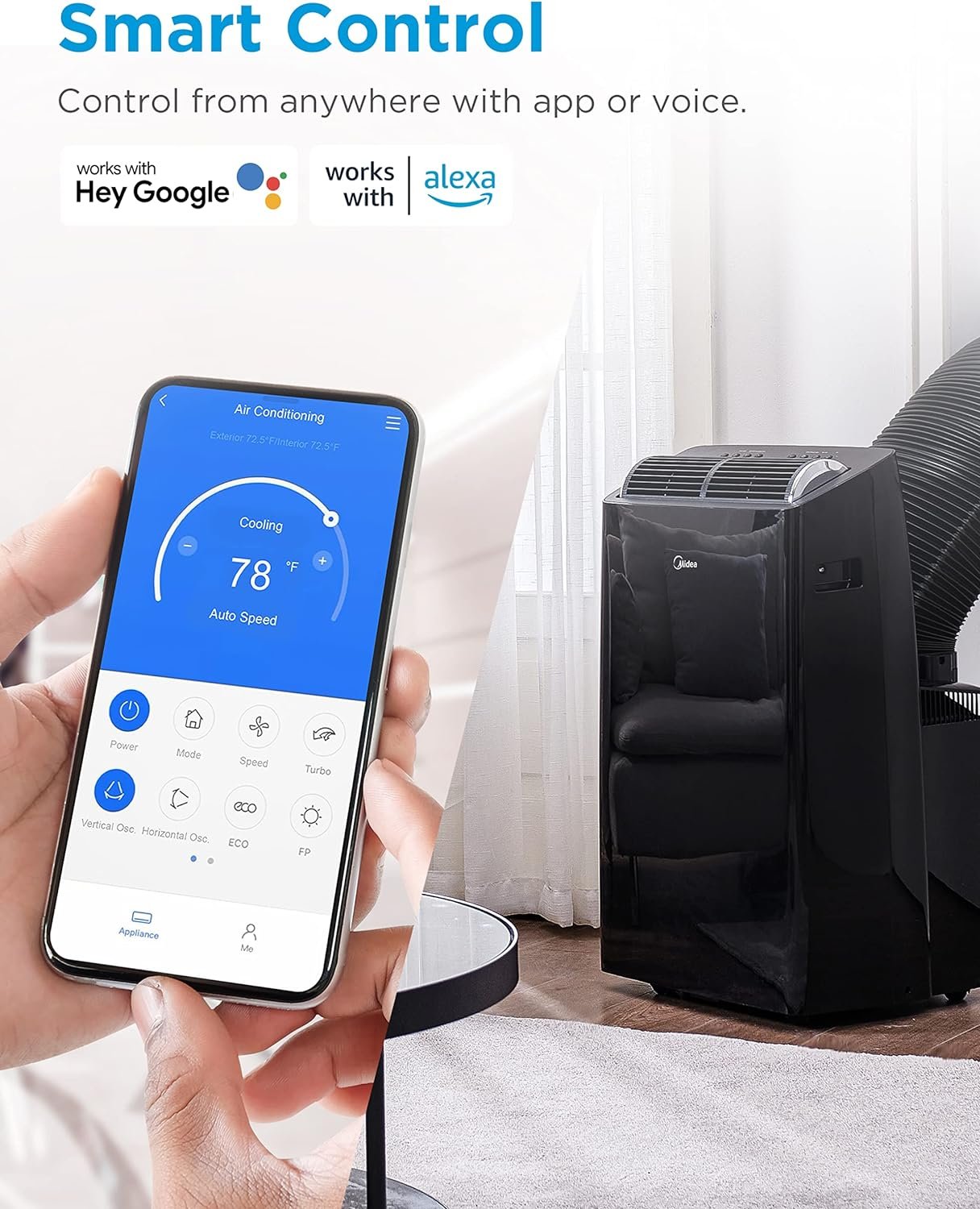 Midea Duo 12,000 BTU (10,000 BTU SACC) Ultra Quiet Smart HE Inverter Portable Air Conditioner for spaces up to 450 sq.ft., Black