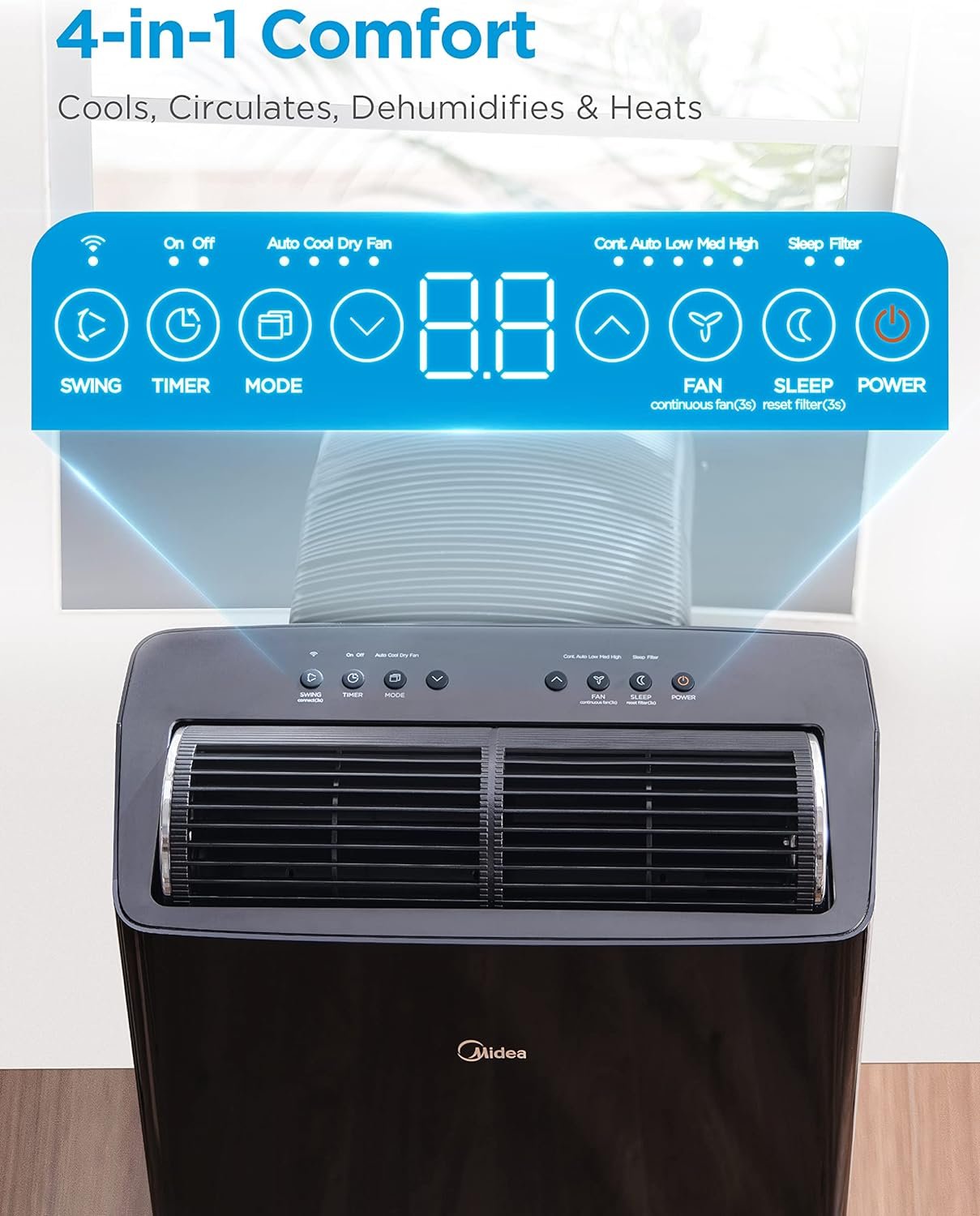 Midea Duo 14,000 BTU (12,000 BTU SACC) High Efficiency Inverter Ultra Quiet Portable Air Conditioner,with Heat up to 550 Sq. Ft., Works with Alexa/Google Assistant, with Remote Control & Window Kit