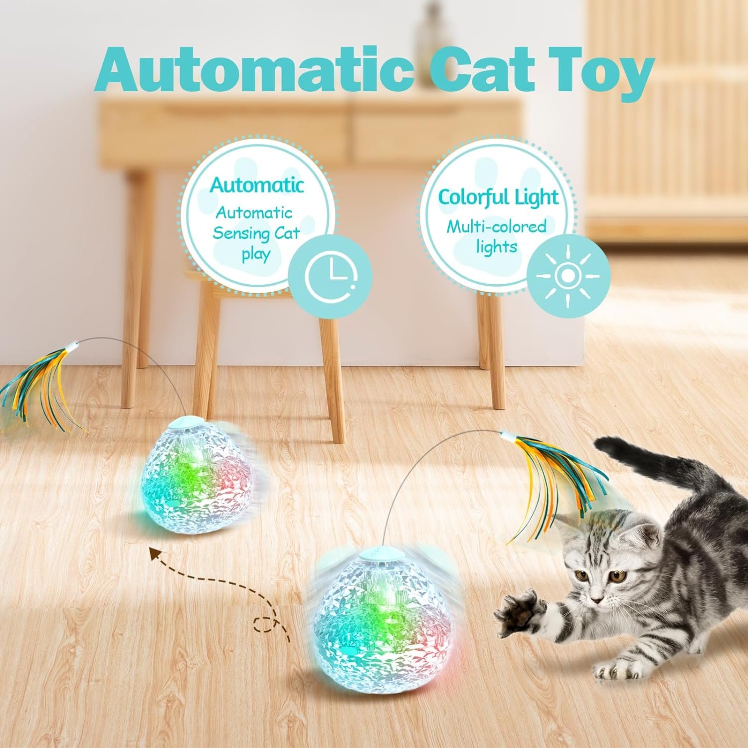Automatic interacting: Irregular Moving cat toys automatic stop in 5 minutes. Waking up Cat toy automatic moving when Cat plays toy again. Cat do self play, No trouble you turn on/off again and again.