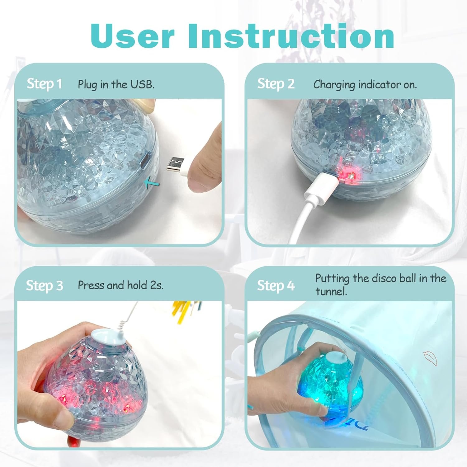 Electric tumbler cat teaser: 360 rotation butterfly on the free moving crystal like tumbler ball with changing colorful lighting, creating various joys by adding feather, fishing, strings refills