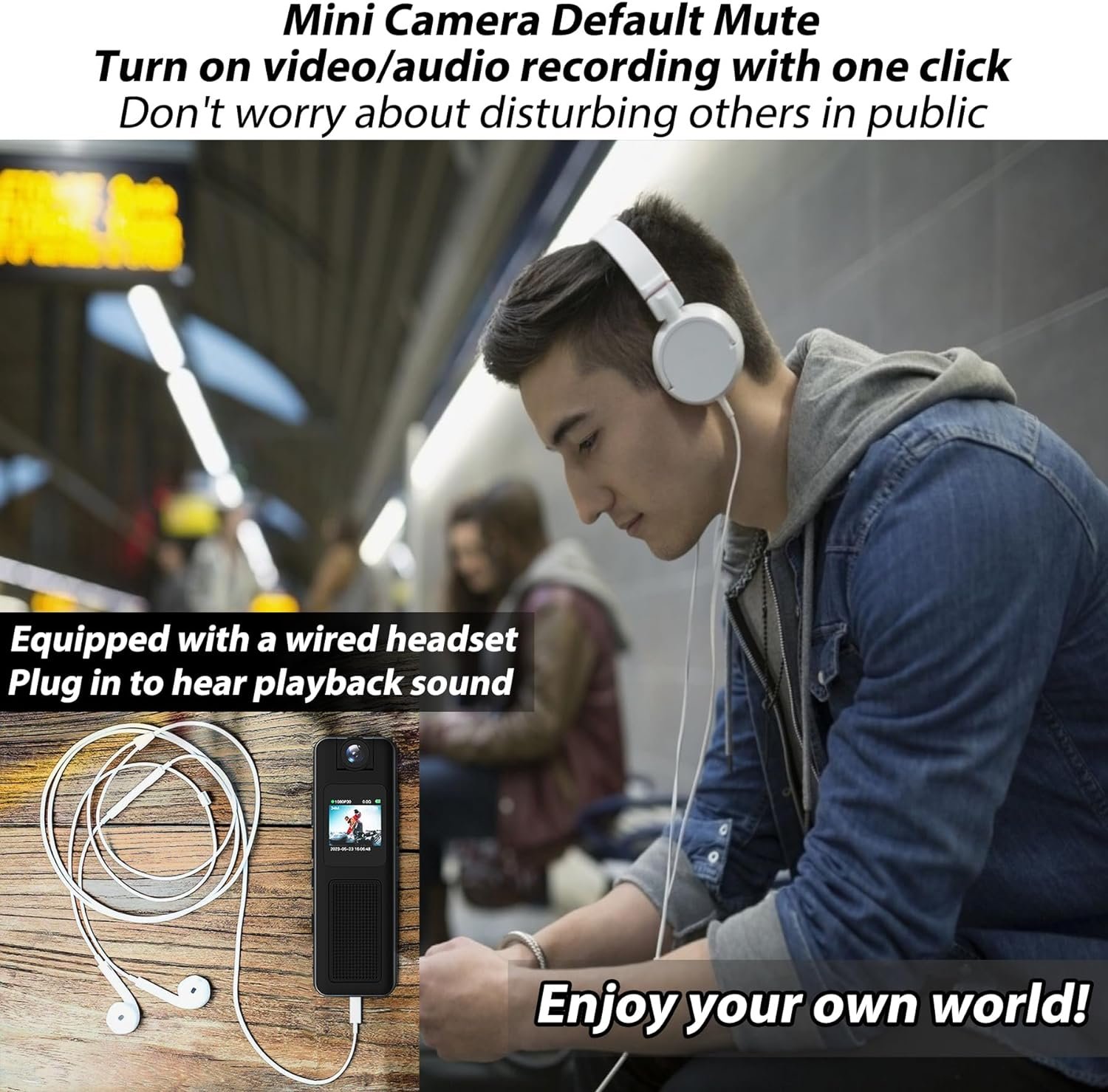 [Equipped with magnetic lanyard-corded headphones] — Magnetic lanyard clip: a magnetic clip that can be hung directly around the neck – (try to avoid strenuous exercise when using). The package comes with wired headphones: the camera must be plugged into the headphones to hear the sound. You can feel free to play back the video you shot on any occasion without worrying about disturbing others.