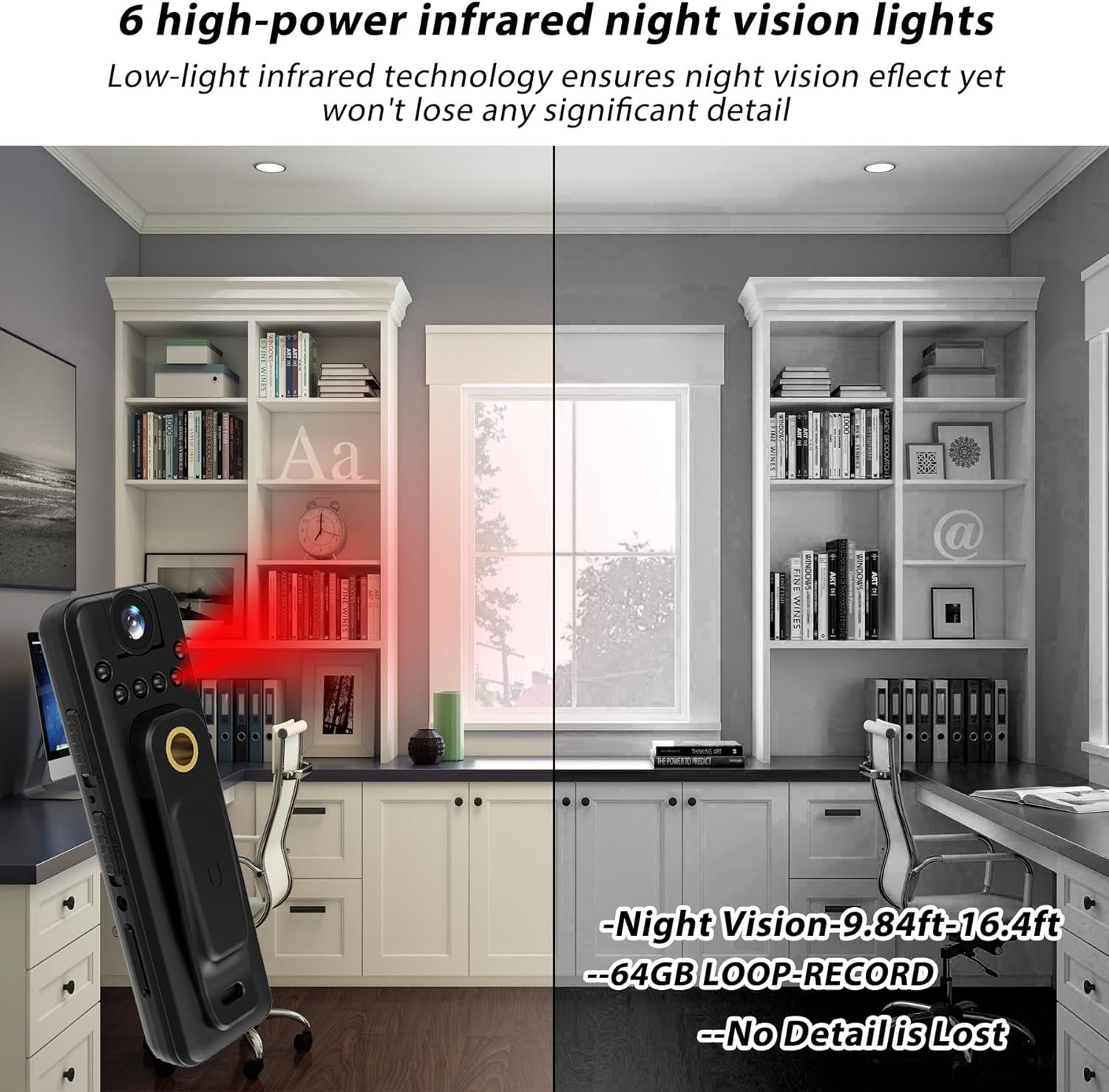 [3.5 HR Battery life/64GB-After sales-service] — In 1080P state 3h video recording and 4h audio recording. Supports power supply and power charging by power banks, enabling long-term continuous recording work. Low battery automatic save and then shutdown, video loss prevention. Please feel free to contact us by email by Amazon if you have any problems, we will try our best to help you within 24 hours. We will offer a full refund or replacement if it’s a product quality problem.