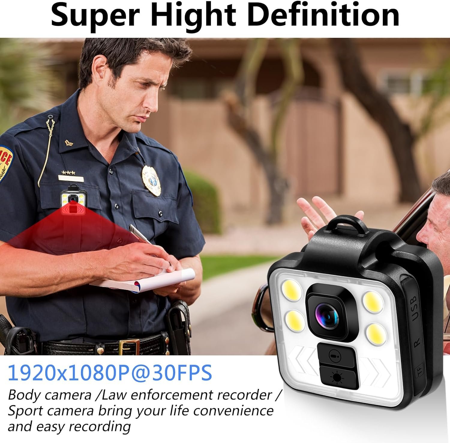 1080P Body Camera: Support 1920x1080P video recording at 30fps, bring you clear and fluent videos. Portable video Camera with night vision, wear it to do some outdoor sports, such as running, and bike-riding, allowing you to record in the complete darkness.