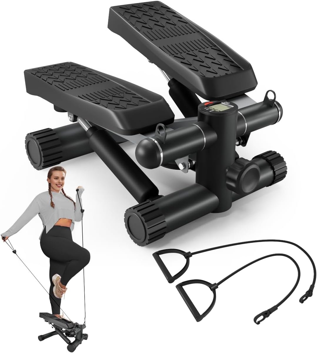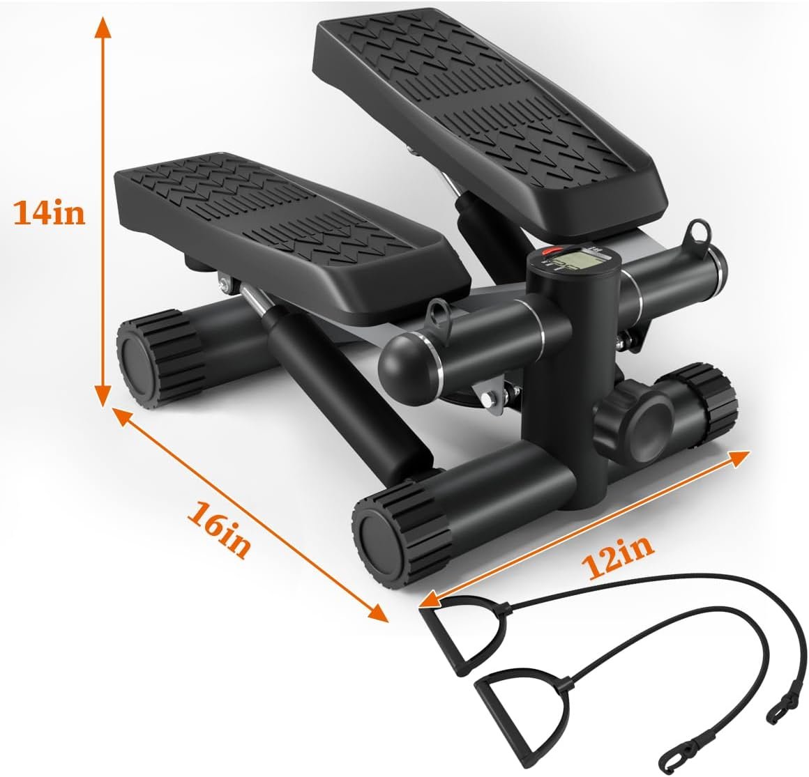 Promotes fat burning and strengthens butt and leg muscles. Through continuous aerobic stepping exercises, you can quickly reduce lower limb fat, enhance muscle strength, and achieve the effect of lifting hips and slimming legs. In addition, it operates ultra-quietly with only 25 decibels of noise, allowing you to exercise without disturbing others at home. The smooth hydraulic system maintains high resistance for 30 minutes per exercise cycle, helping to burn fat quickly. Gradually reduce the resistance after 30 minutes to help maintain aerobic status. Ready to use right out of the box, this stepper weighs only 12 pounds and can be easily moved to any room. It has a weight capacity of 330 pounds, is unisex, and is constructed from 2.0mm thick commercial steel construction for ultimate stability. The compact size of 16*12*14 inches requires only 1.29 square feet of floor space, allowing it to fit into any limited space. Additionally, the stepper includes adjustable pedal height to strengthen balance and core muscles. The smart LCD digital display helps you keep track of important data like counts, time, calibration, scans and REPS/MIN, allowing you to monitor your progress. Comes with two high-elastic resistance bands, so you can exercise your upper body while taking steps for a full-body workout that burns fat and sculpts your entire body. Product Name: Stair Stepper for Fitness, Stair Stepper with Resistance Bands, Mini Stepper with 330 Lbs Load Capacity, Hydraulic Fitness Stepper with LCD Display, No Assembly Required Product name: Stair stepper for exercise, stair stepper with resistance band Main color: black Main ingredients: ABS+rubber+steel (Q235) Assembled length (inches): 15.75 Assembled width (inches): 11.81 Assembled height (inches): 7.09 Weight (lbs): 12.20 Package list: 1* stepper 1*resistance band