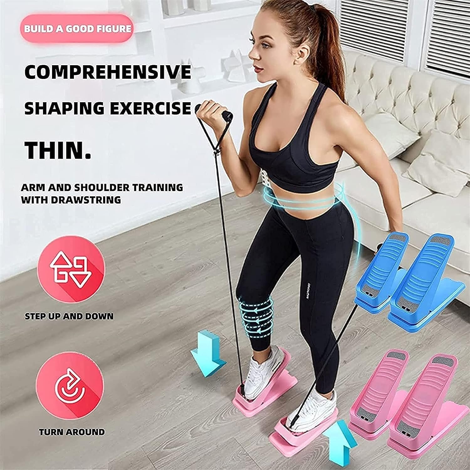 [WITH RESISTANCE BANDS]: The mini stepper with training belt can be used for multiple trainings. Arms, shoulders, and biceps are equipped with exercise belts. The stepper tightens the muscles of the buttocks.
