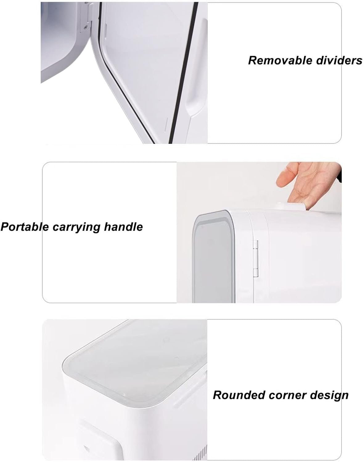 3. COLD AND HOT DUAL USE: Refrigeration minimum 0‑2 °C, can refrigerate cosmetics, milk, drinks, fruits, vegetables, etc. Heating up to 65 °C, can be heated mask, milk, bento, sandwiches, etc.