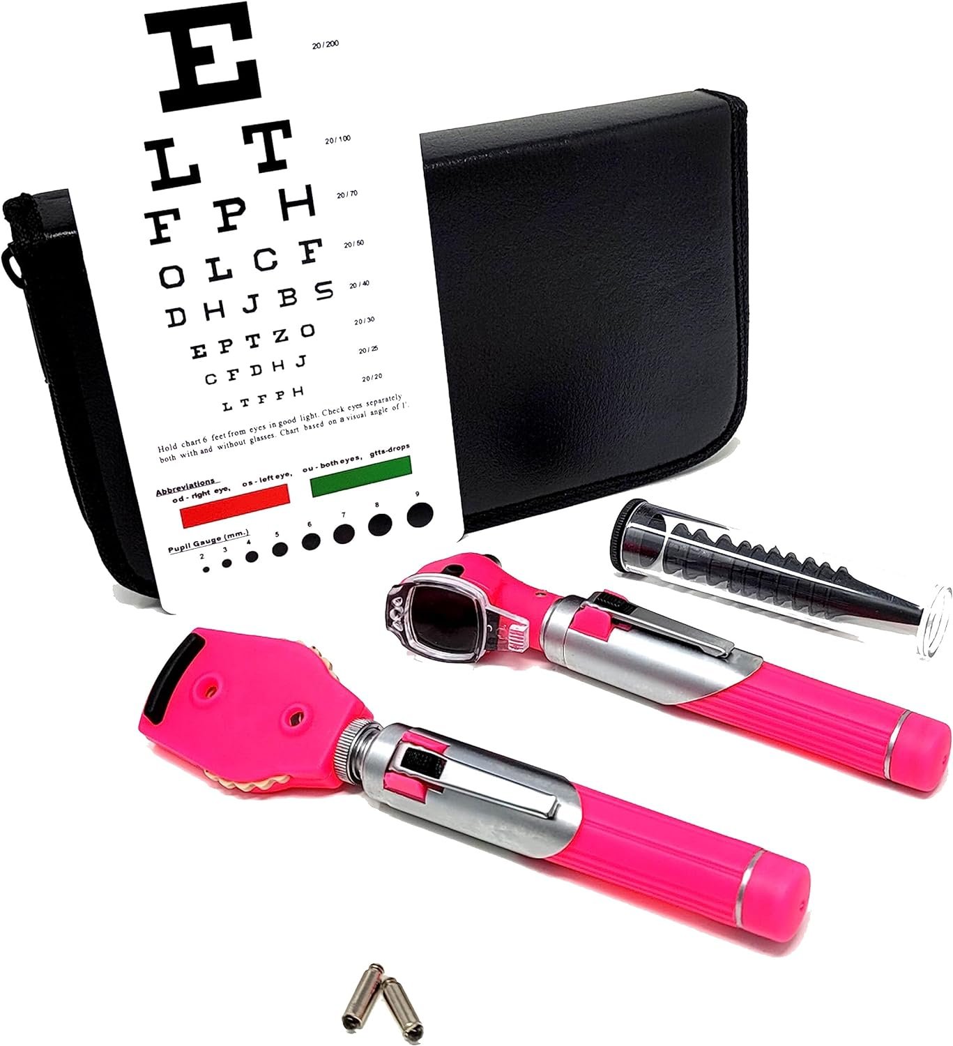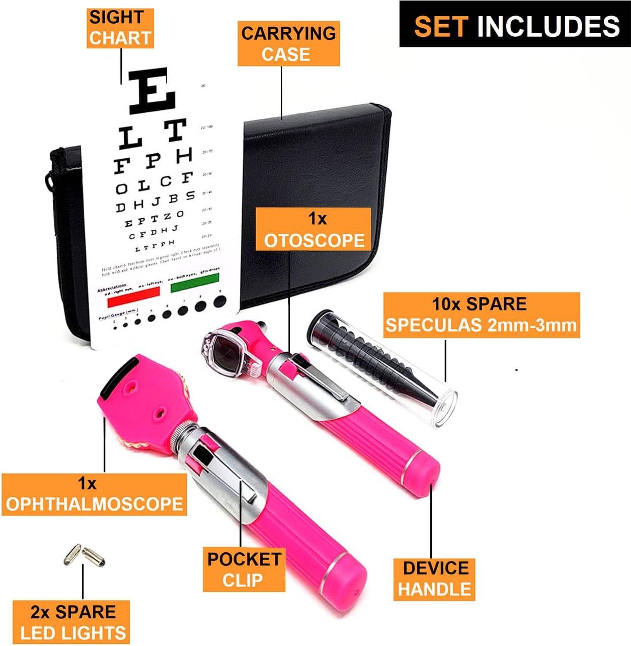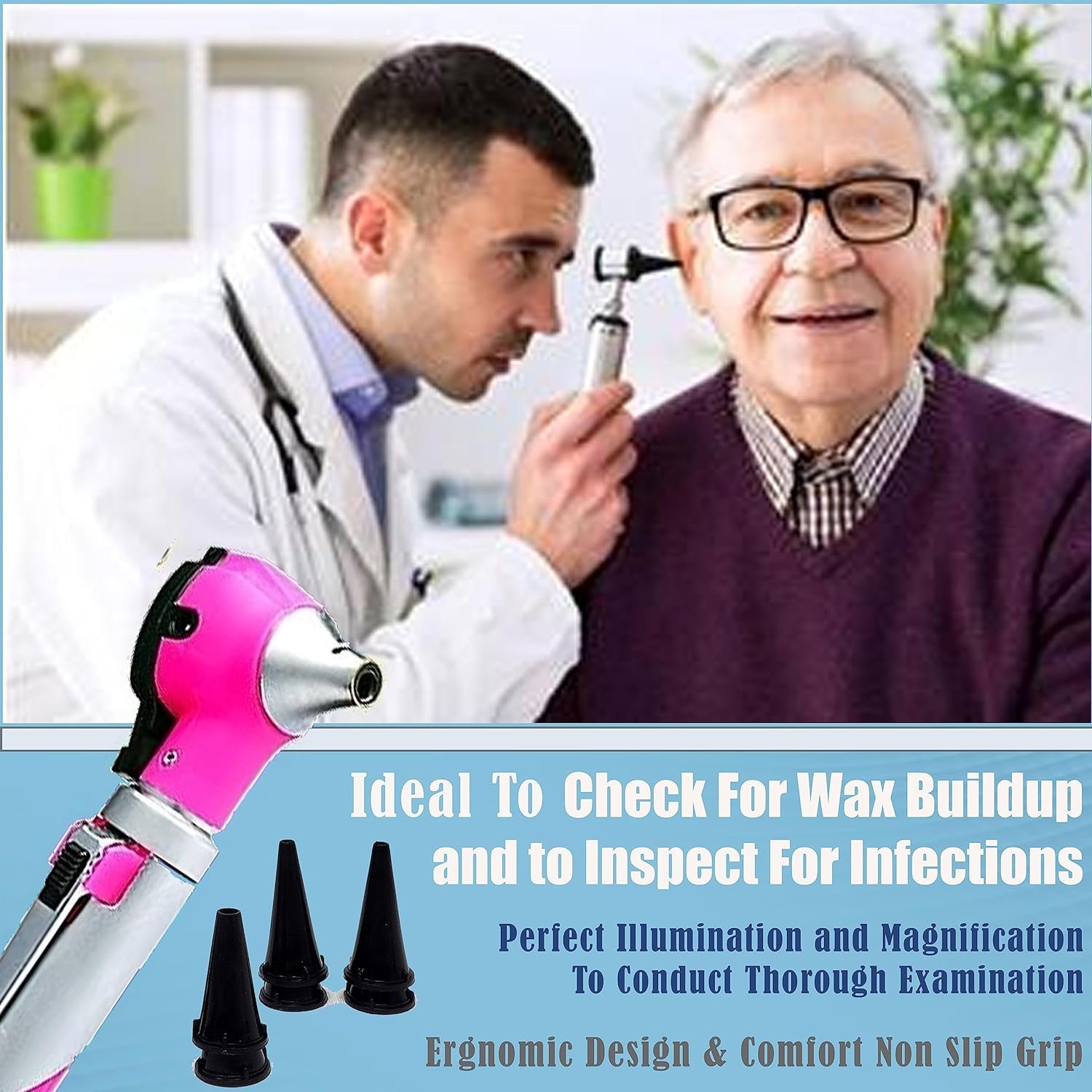 Mini Otoscope – Portable Ear Light and Exam Kit for Home & Professional Use -3X Magnifying Fiber Optic Scope with Spare Tips, Bulb, & Carrying Case – Pocket Diagnostic Equipment (Pink)