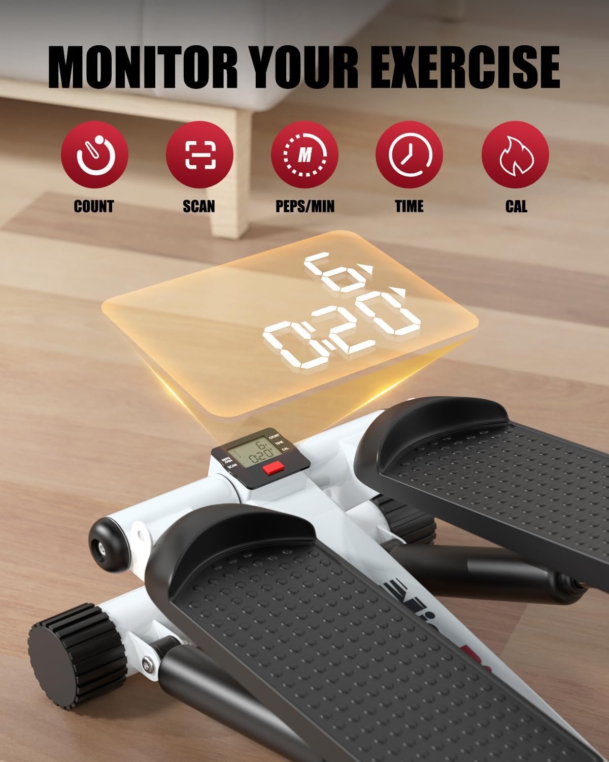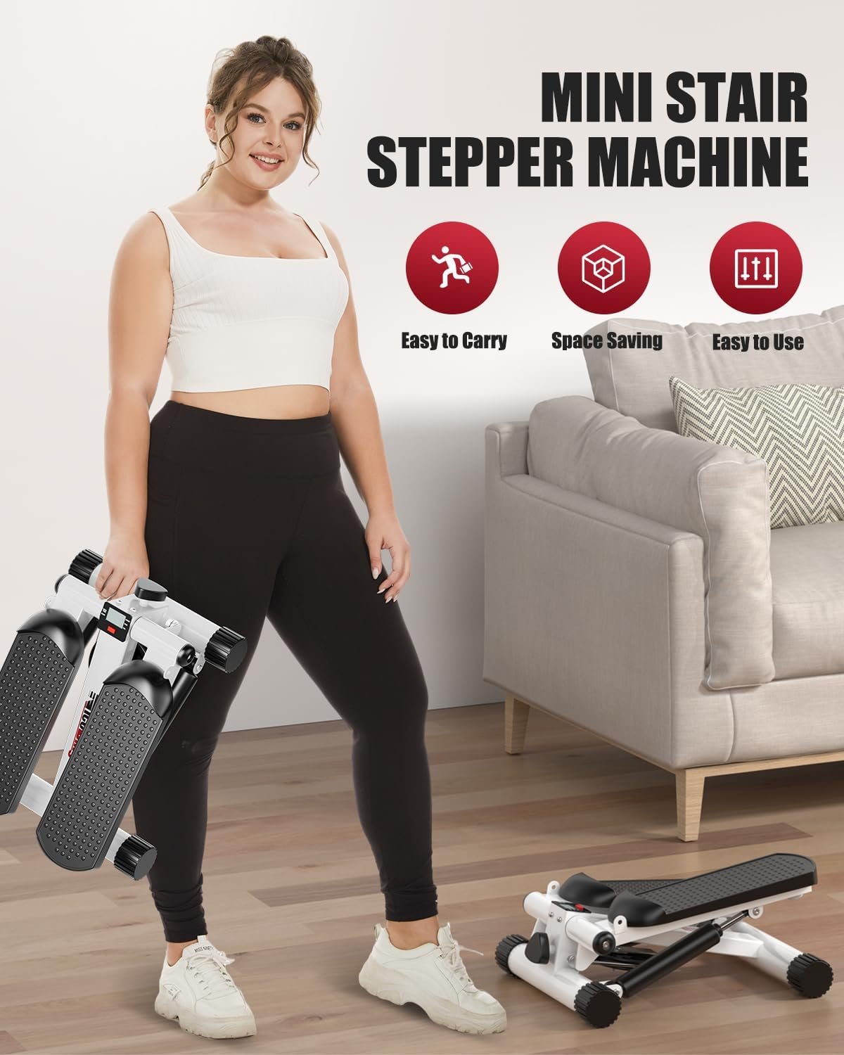 Easy Setup and Space-Saving Design: The portable step machine requires no installation and boasts a compact design, taking up just 1.6 square feet of space. You can effortlessly use it at home, in your apartment, office, or even under your desk