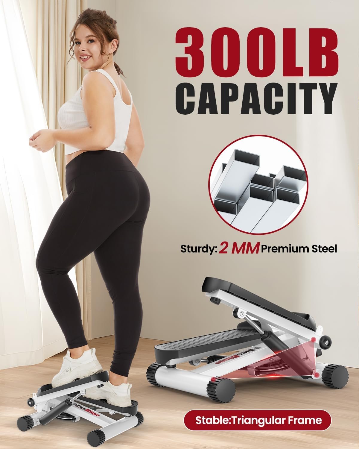 Robust 300LB Weight Capacity: Crafted from premium 2mm steel, the stair stepper offers exceptional stability and supports a weight capacity of up to 300lbs, ensuring durability and safety