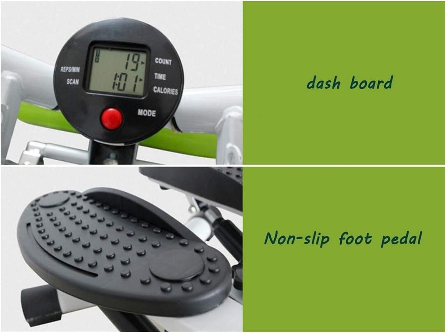 **Material:** It features textured non-slip pedals and wide bases, ensuring a steady, quiet, and smooth workout experience. The wider foot pedals, combined with a robust steel structure, instill confidence in users during their workouts.