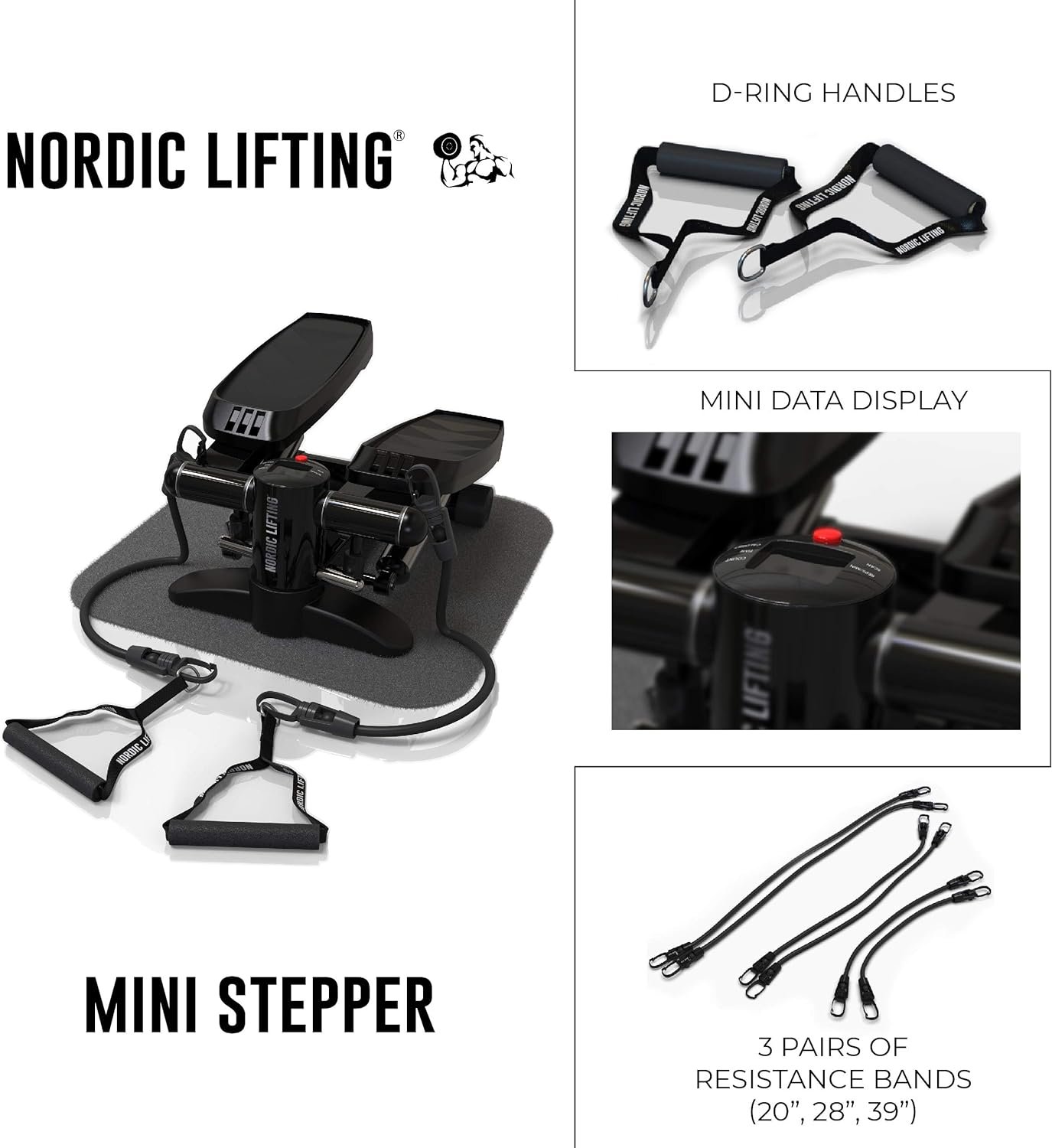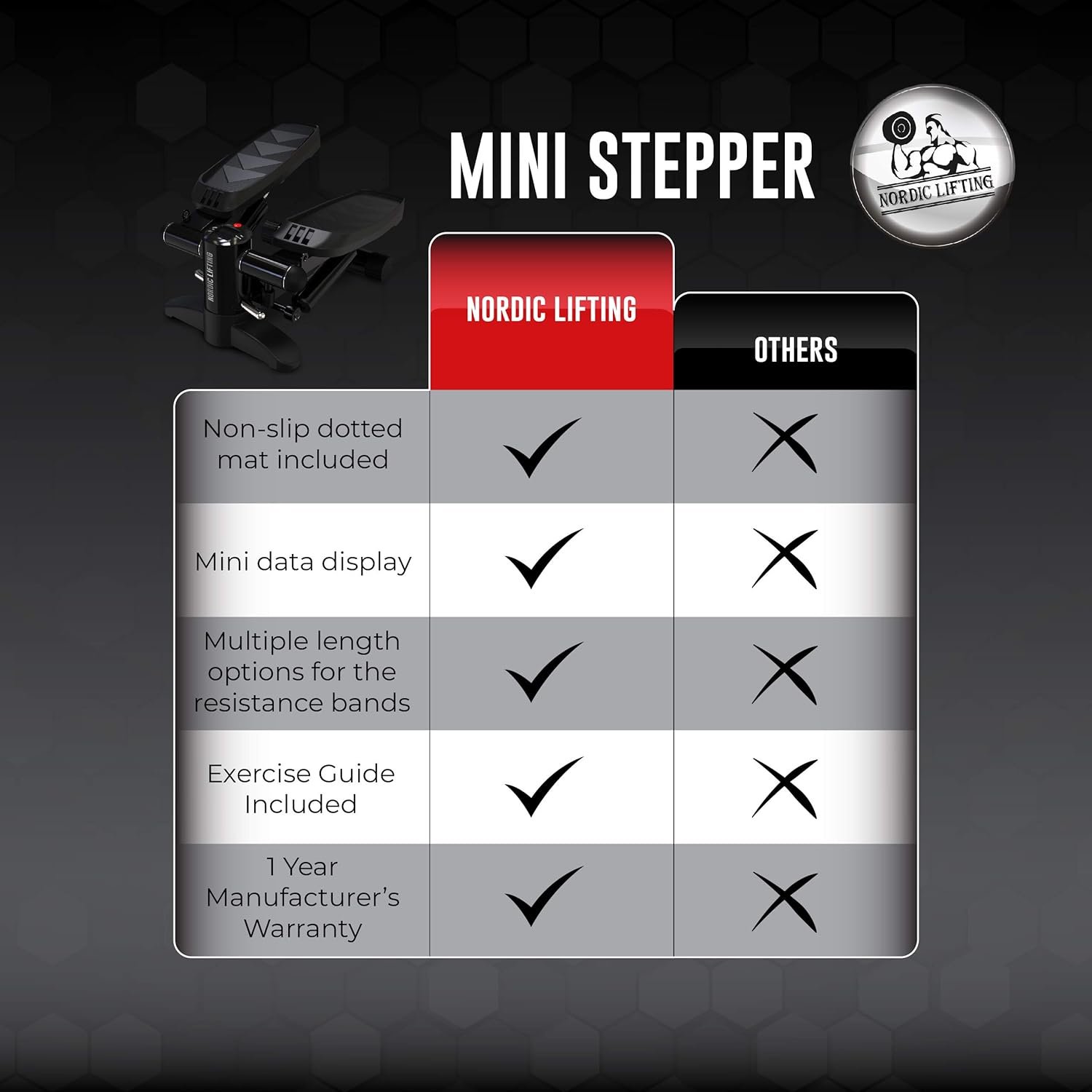 INCLUDED – 1x Nordic Lifting Mini Stepper, 2x 20” Resistance Bands, 2x 28” Resistance Bands, 2x 39” Resistance Bands, 2x D-ring Handles, 1x Net Bag with stepper parts, 1x User Manual. Comes with a hassle free 1 Year Warranty