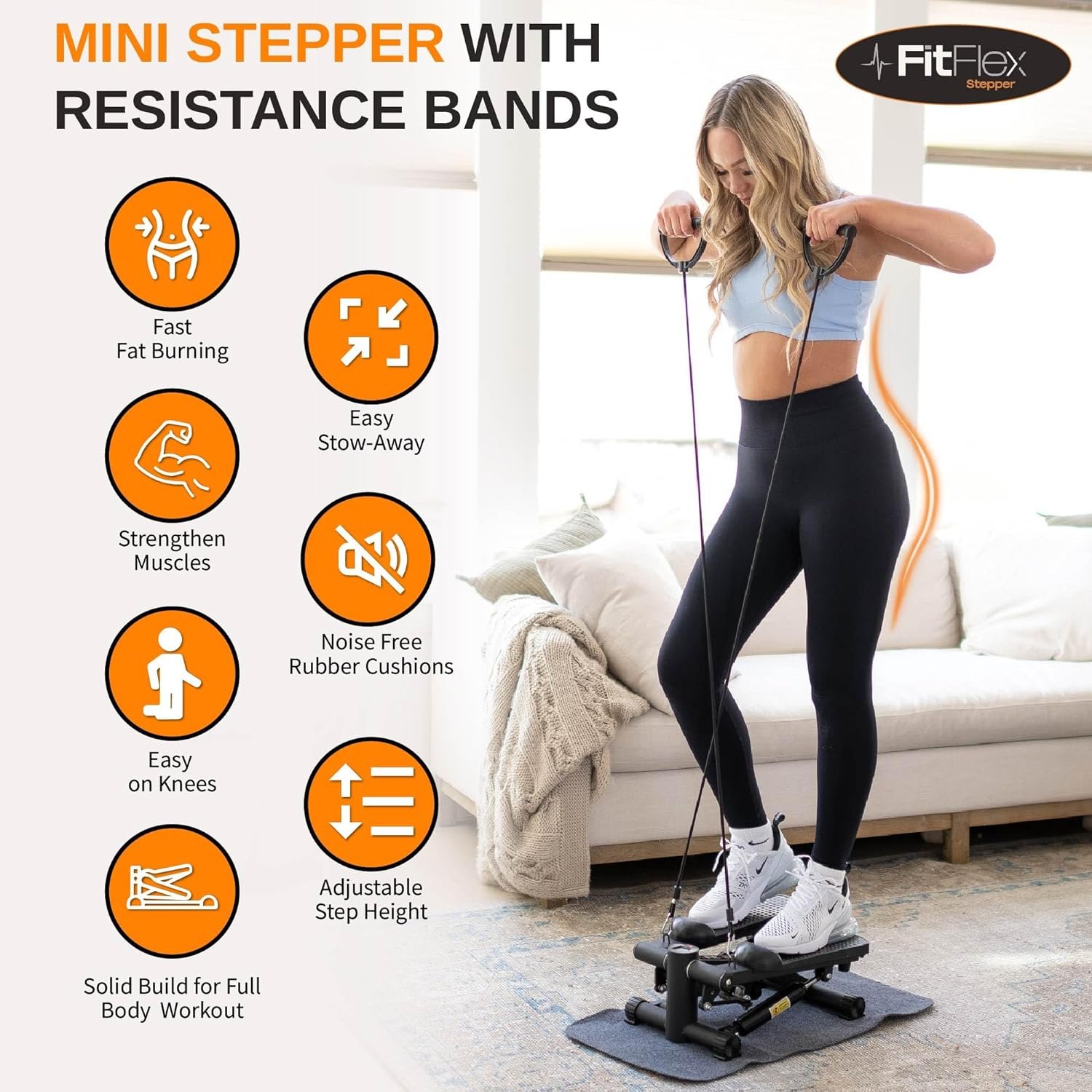 🔥Top-to-Toe Transformation: The secret’s our 2-way system; Our workout stepper tones legs, glutes, and thighs via low-impact cardio exercise, while our exercise bands work your upper-body muscles