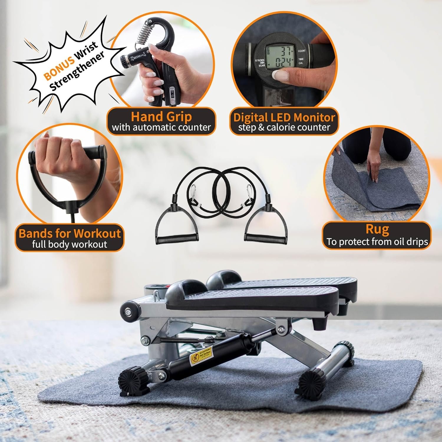 🔥2 Exclusive Extras: All our mini steppers for exercise come with our hand grip strengthener – which tones your wrist and forearm to improve your grip – plus an area rug designed to protect your floor