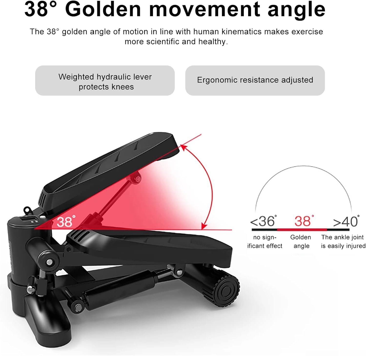[38° Golden Exercise Angle] The portable stepper designed for home with a golden exercise angle of 38° with resistance rope has. The steppers for training have a good effect on weight loss such as abs training thinning waist lifting buttocks thinning legs helps you quickly create an S-shaped curve and get your whole body moving.