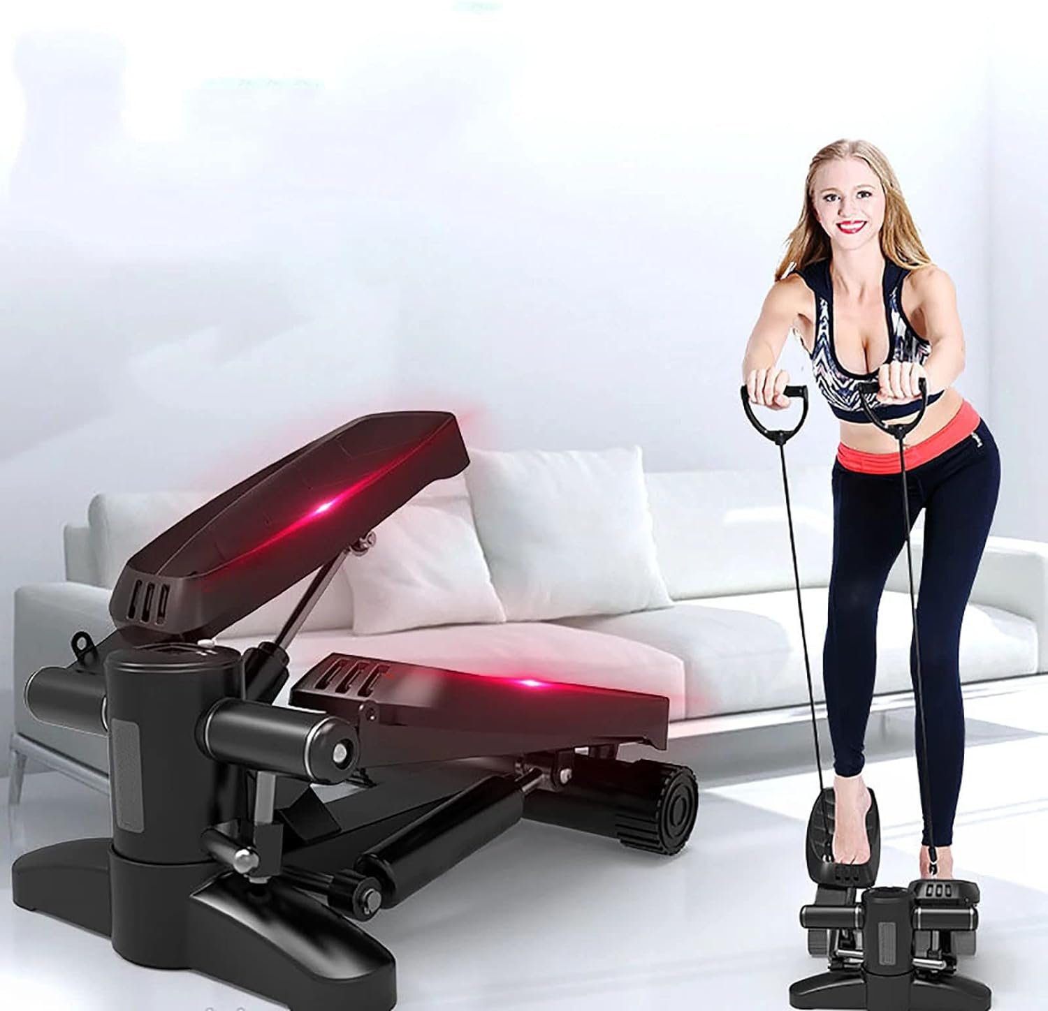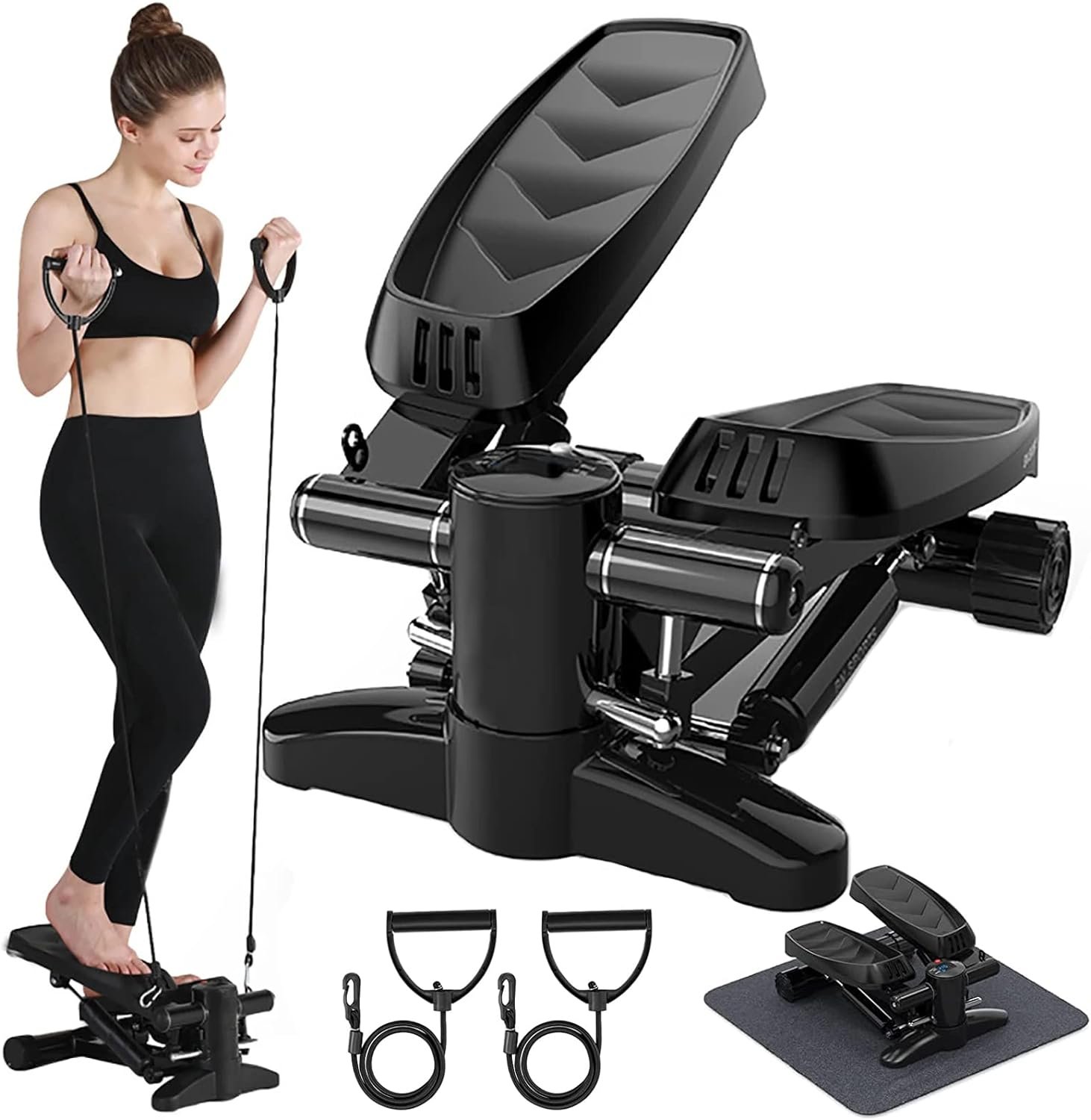 [Effective Full Body Workout]Full body workout machines for home twist action helps you tone thighs and buttocks while achieving a challenging cardiovascular workout. Resistance Bands of home stepper exercise machine work arms chest back and shoulders for total body workout. The home fitness equipment of step exercise machine is perfect for weight-loss body-shape and daily exercise.