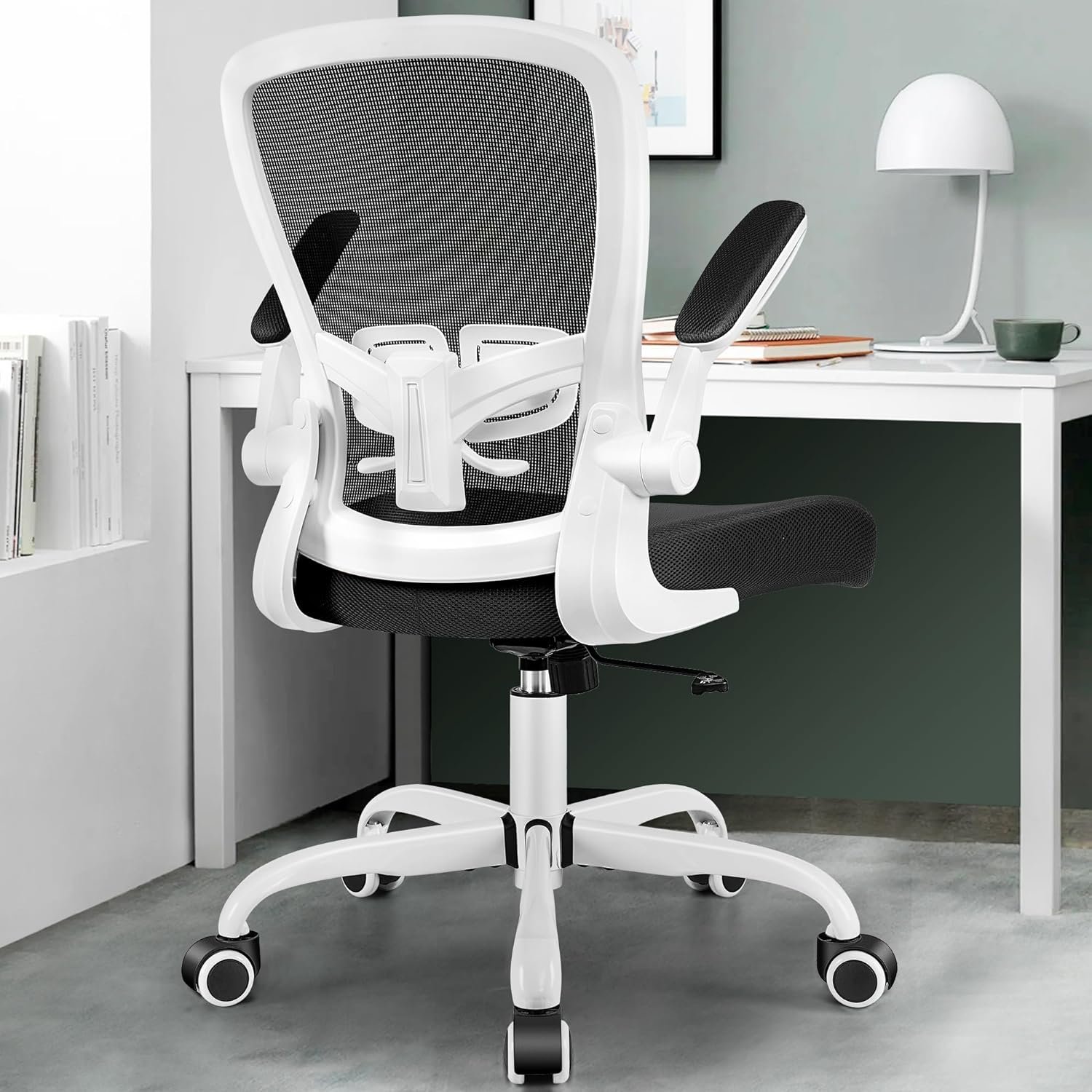 MINLOVE Office Chair Ergonomic Desk Chair with Adjustable Lumbar Support and Height, 90° Flip-up Armrests, Ergo Desk Chairs with Wheels, 360° Swivel Mesh Chair, Home Work Use (White)