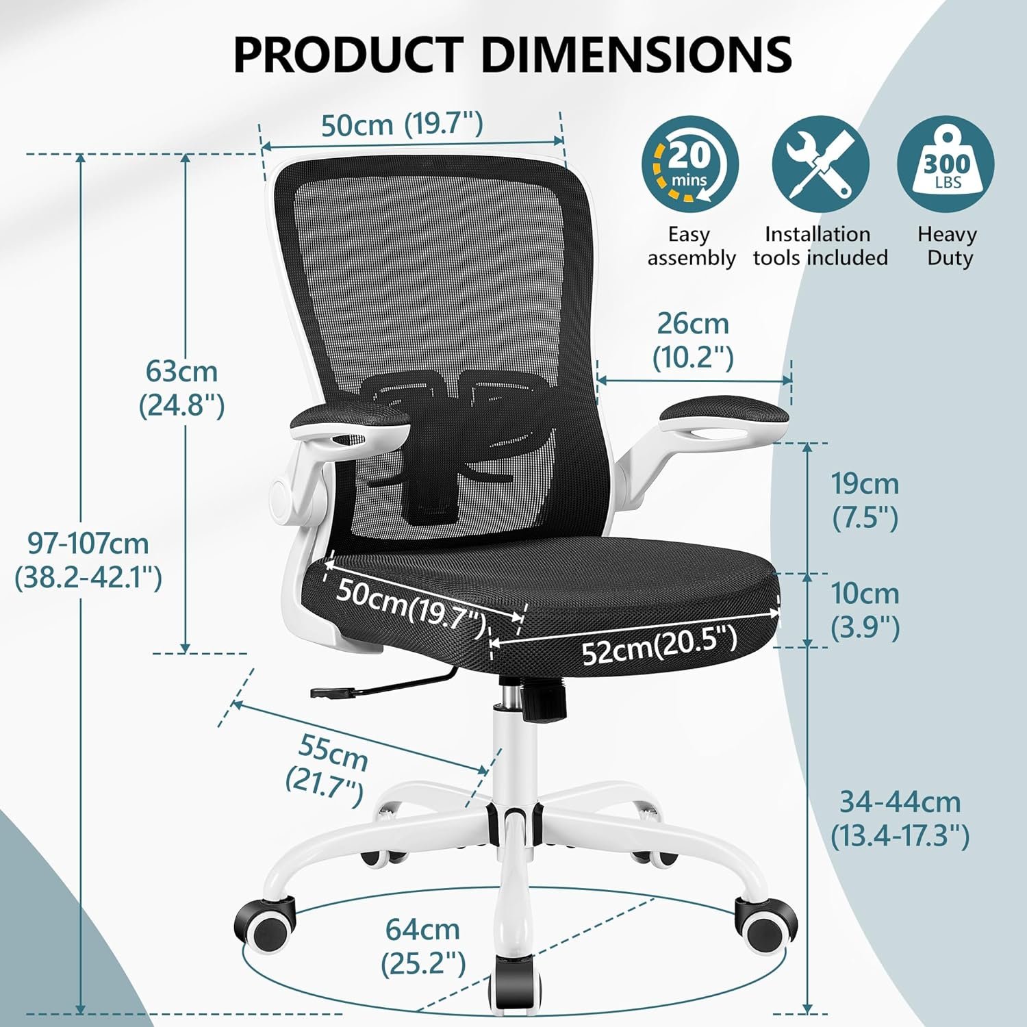 【Easy Installation】You can finish installing the desk chair by yourself in 15 minutes, even for petite adults. We have included installation tools, manual and video.