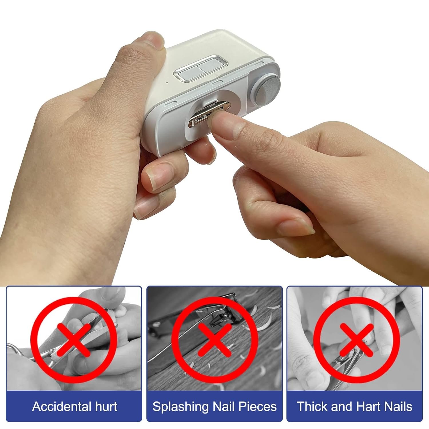 Mixiichilulo™ Automatic Nail Care can be used for various nail care tasks, including clipping, grinding, and polishing for Baby Kids Seniors Weak Hands (White/bigsize)