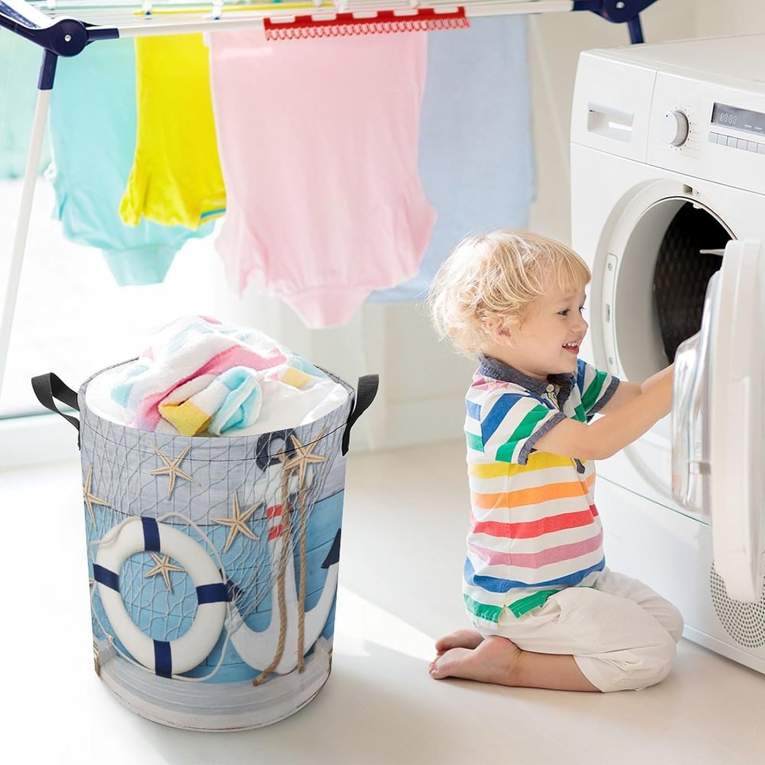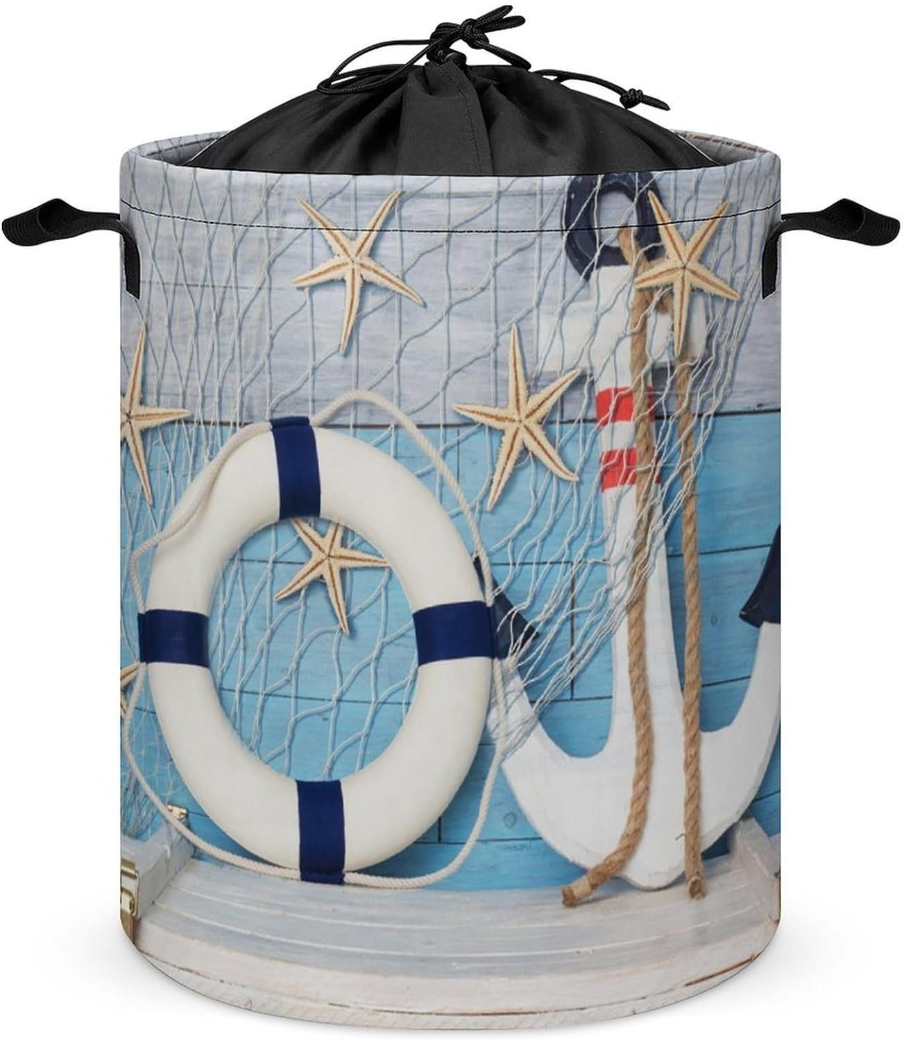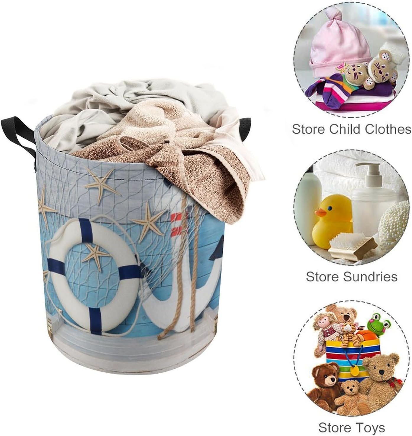 1: This Brebasf Modern Abstract Nautical Theme laundry hamper is made of high quality oxford fabric for durability. Its sleek design also adds a touch of style to the laundry room or bedroom.2: With a diameter of 13.8 inch and a height of 17.3 inch, it fits in most closets or laundry areas, allowing you to properly place your clothes and optimize space utilization. Its foldable design allows for easy storage when not in use, saving you valuable space. Ideal for those looking for an efficient solution to organizing their laundry.3: The laundry hamper comes with a thoughtful carry strap that provides a secure grip and makes it easy to transport your laundry from one place to another. The sturdy carrying straps make it easy to lift and carry your laundry. No more struggling with heavy bags or flimsy baskets!4: The Laundry Basket is a practical and versatile solution for organizing your laundry. This durable and lightweight basket is designed to simplify the process of carrying and sorting laundry. It has enough storage capacity to hold a large number of clothes, making laundry a breeze. A nice choice for Halloween, Christmas and Thanksgiving gifts.5: Please Note! Due to various factors such as monitor brightness, light brightness, etc., the real color of the product may be slightly different from the image shown on the website!Please contact us if you have any questions!