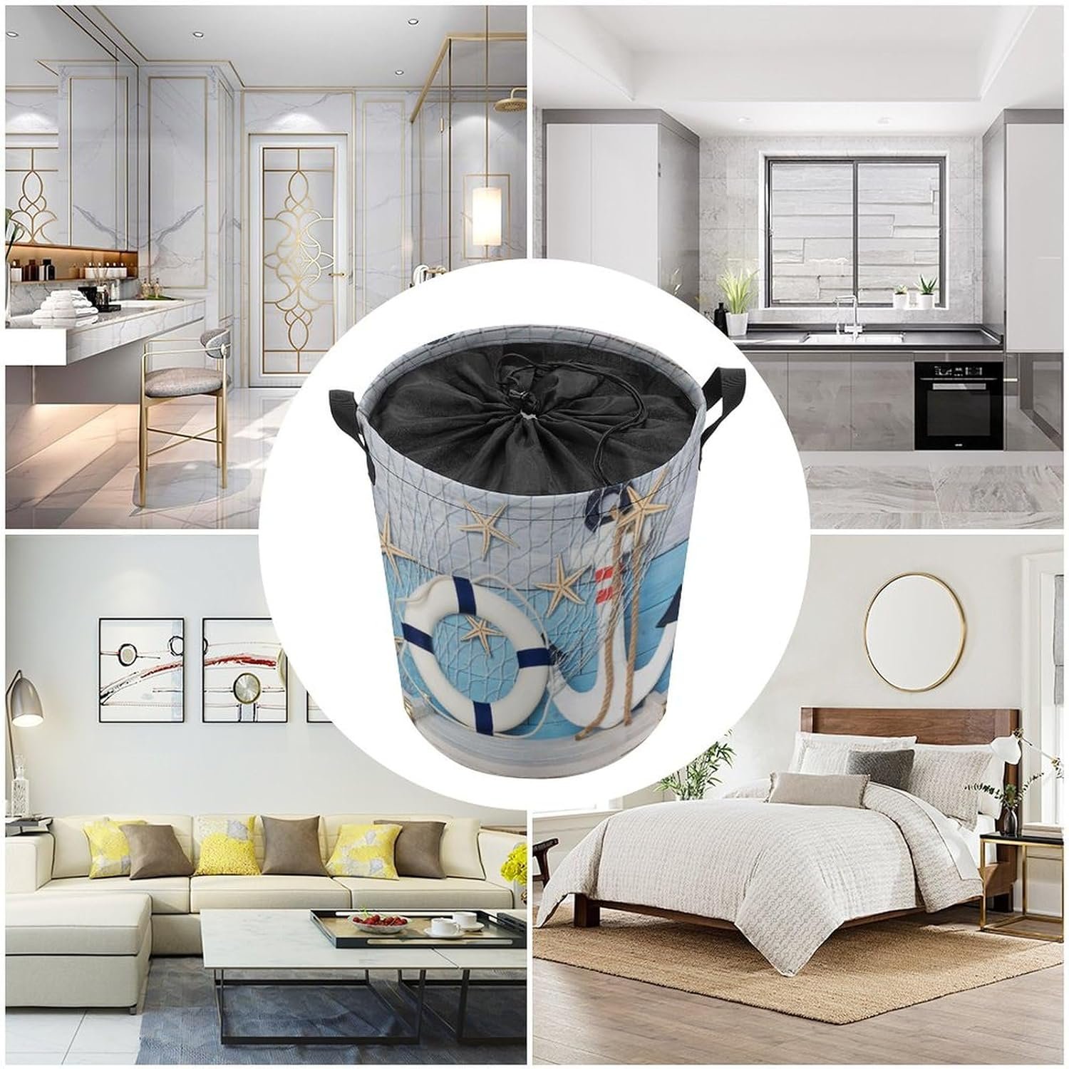 【Spacious And Convenient】: This Brebasf Modern Abstract Nautical Theme laundry hamper is made of high quality oxford fabric, the laundry hamper has a diameter of 13.8 inch and a height of 17.3 inch, which provides plenty of space for storing your dirty clothes.