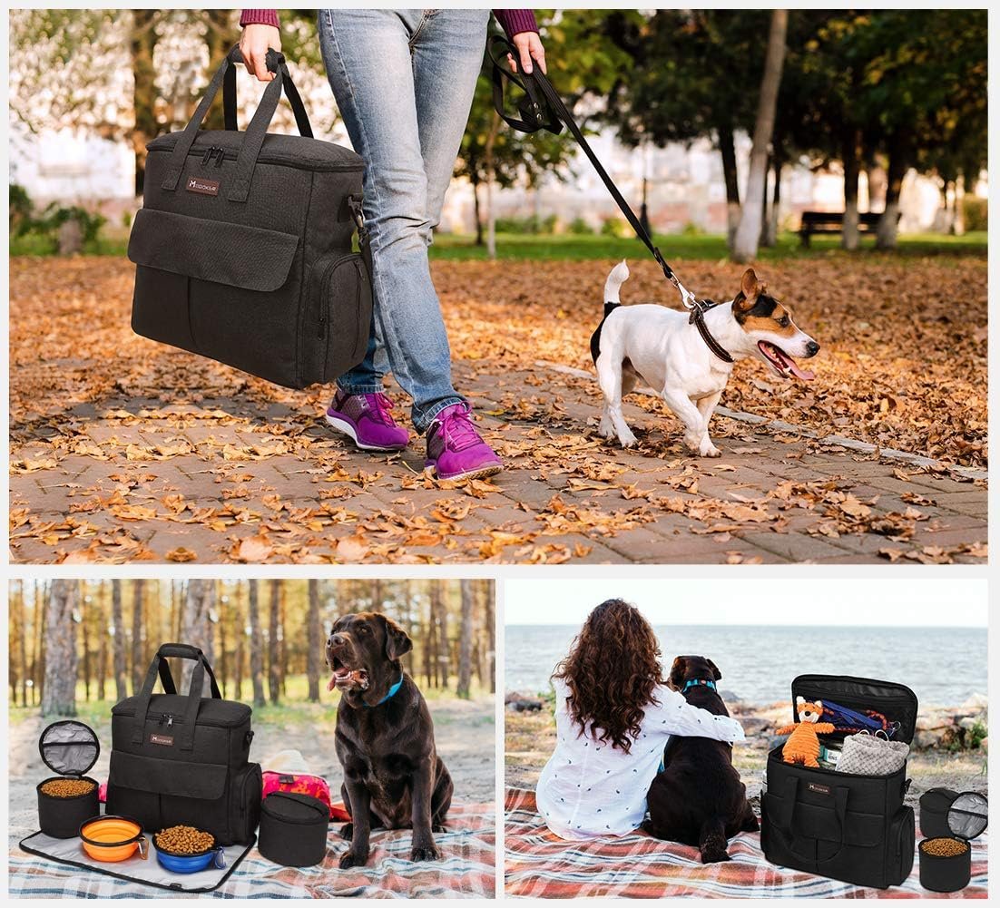 The Dog Travel Organizer Kit Bag Ideal for everyday use for all of your essentials: conveniently carries food, water, treats, leashes, Frisbee, pet toys, first-aid kit. Applicable Occasions: traveling, hiking, outdoor activities, go to the park.