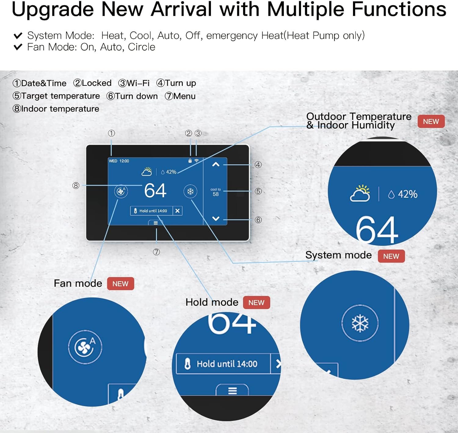 【Easy to Install and Operate】Bright, easy-to-read touchscreen makes for simple operation.The new arrival set for room temperature control comes with the wall plate, screws, label, remote sensor,specially the power module for the condition with no C-wire in your house.If you have any questions, please contact us to give you professional help.