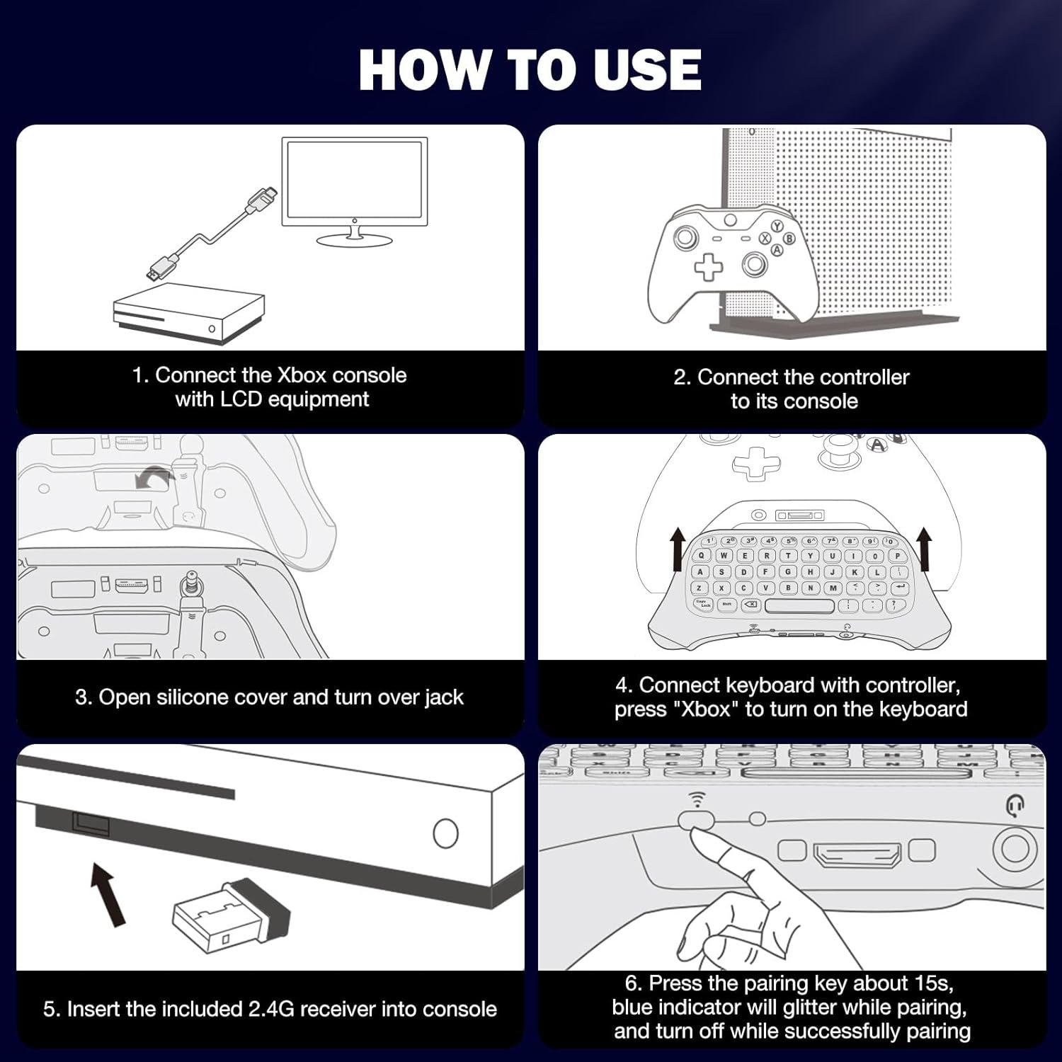 ๐๐ฒ๐๐ฏ๐ผ๐ฎ๐ฟ๐ฑใMoKo Xbox One keyboard is suitable for Xbox One/One S/Series S/Series X/Elite/Elite 2 controller, not for Xbox One X. Compact and lightweight design ensures comfortable grip and controller aesthetics. If you have any questions, please feel free to contact us. Customer satisfaction is our eternal pursuit. The Xbox One accessories package comes with 1x Xbox chatpad, 1x manual, 1x 2.4G receiver.