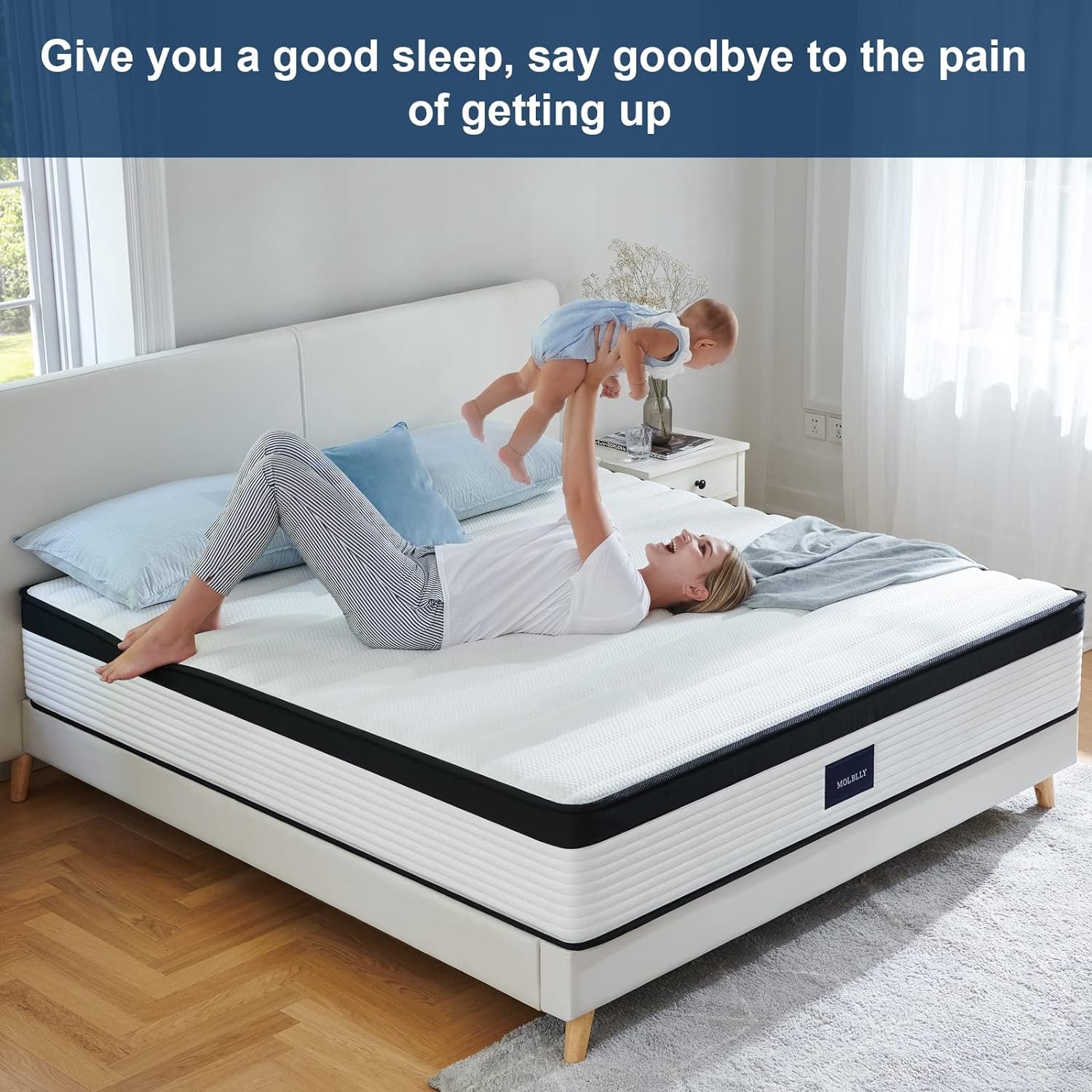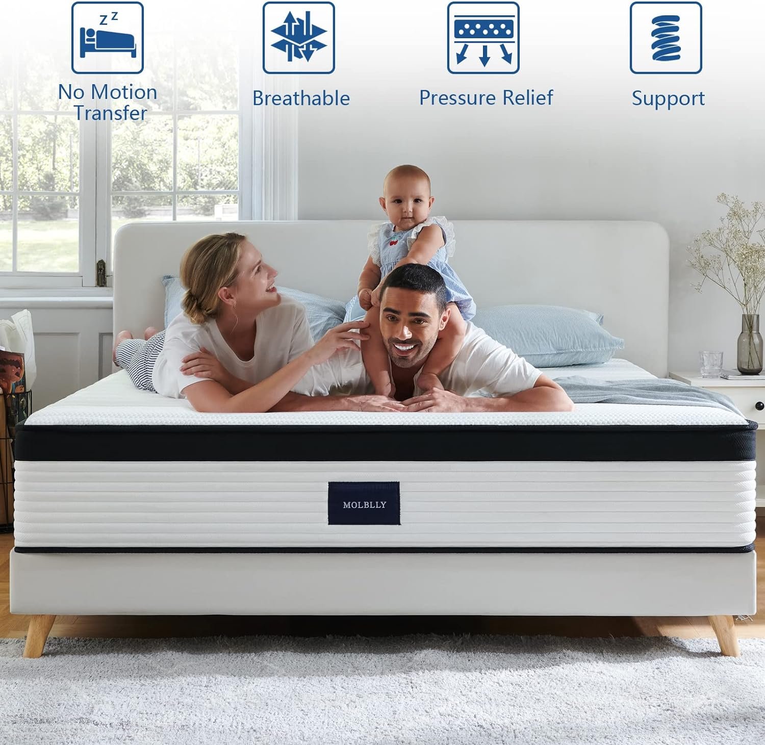 【ULTRA QUIET】- Full mattress in a box features an upgraded premium stainless steel individual pocketed spring design and bottom encased foam edge support, each spring works independently to minimize motion noise during sleep. Say goodbye to motion transfer from your sleep partner. At the same time, the excellent shock absorption and resilience of queen mattress takes good care of your spine.