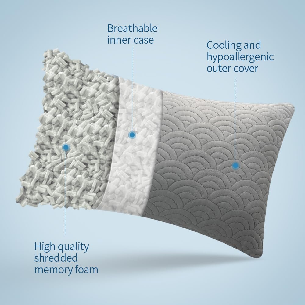 THE BEST PILLOW FOR YOU: Unlike solid memory foam pillow, the crushed up memory foam pillows can be foldable and bring adjustable loft for different sleepers. Its traditional pillow shape gives you a shorter new pillow adaptation period when compared with special-shaped contour pillow. More than that, these adjustable loft pillows are more supportive and firmer than down pillows